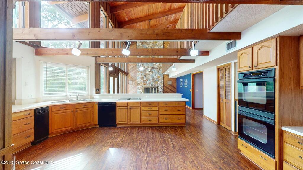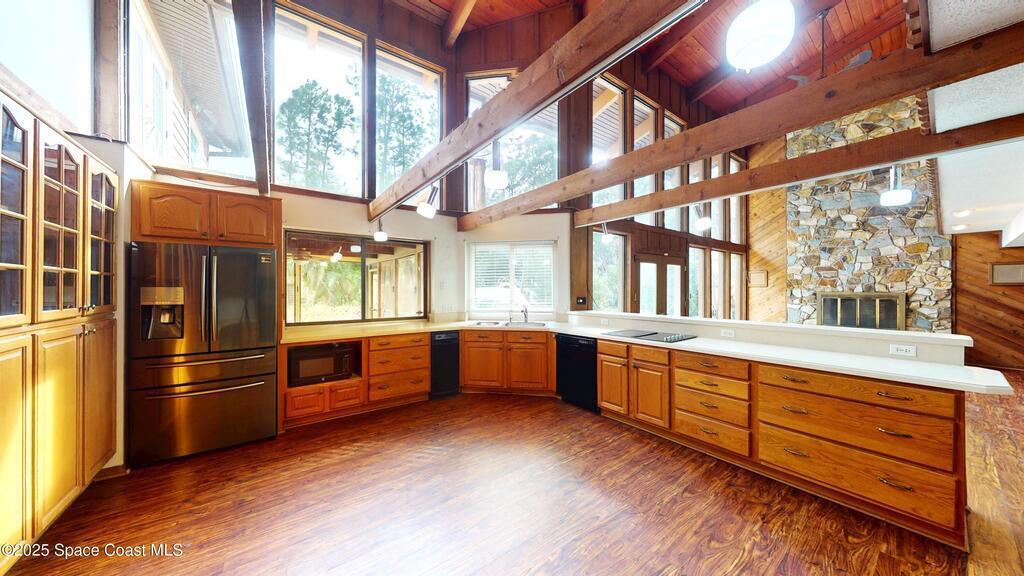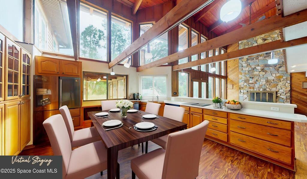 CHARMING 'COUNTRY-IN-THE-CITY' POOL HOME Nestled in a Highly Sought-After West Melbourne Location (NO HOA). This Exceptional Home, Offered for The First Time Is Perfect for the Large or Multi-Generational Family. Set on a Generous 3/4 Acre Corner Lot at the End of a Peaceful Cul-de-Sac, This Property Offers a Serene Atmosphere, Providing the Perfect Balance of Tranquility and Convenience. Spanning 3, 984 Square Feet Under Air, This Classically Designed 5-Bedroom, 4.5-Bathroom Features A Large Recreation Room w/Full Bath, Easily Convertible to In-Law Quarters On The Ground Floor. Inside You'll Find an Expansive Layout Featuring a Spacious Family Room, Formal Dining Area, Living/Den/Flex; and a Huge Country-Style Eat-In Kitchen with Newer Appliances & Butler Pantry. The Soaring Wood-Beamed Vaulted Ceiling and Artistic Rock Fireplace Add a Sense of Grandeur and Openness, While the Abundance of Natural Light makes the Space Feel Warm & Inviting. See Supplement For List of Updates/Amenities
