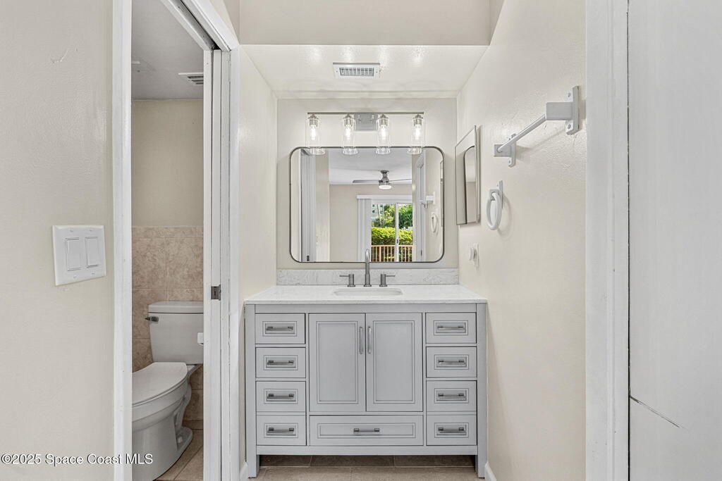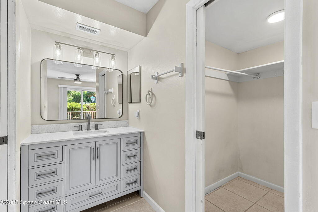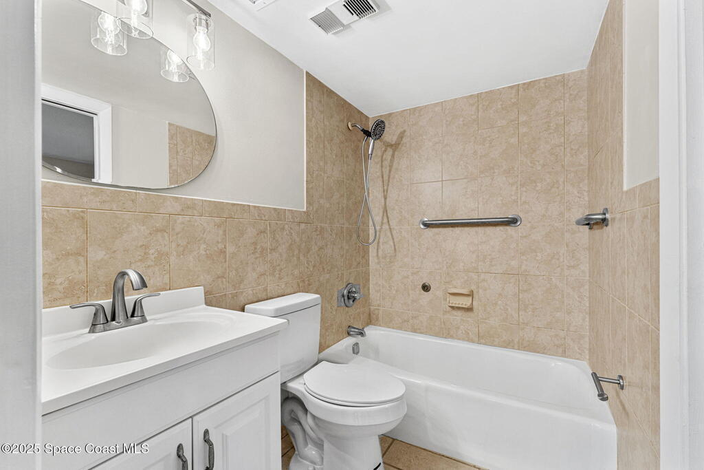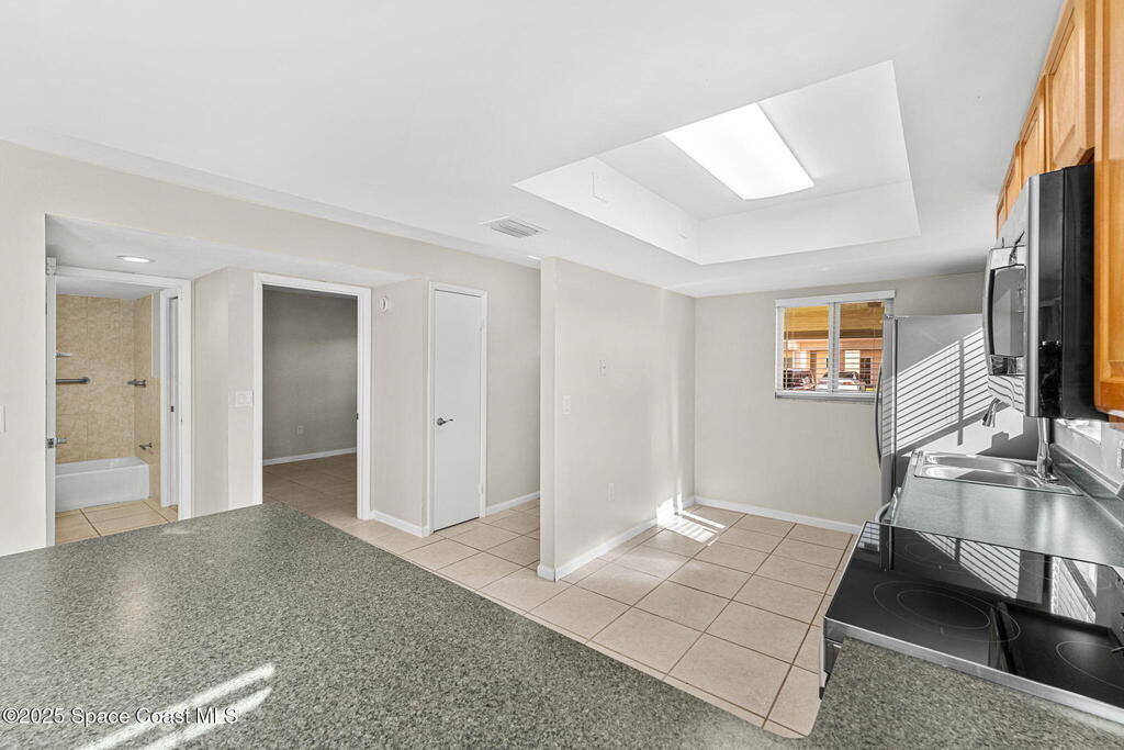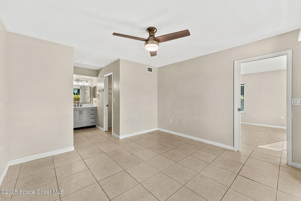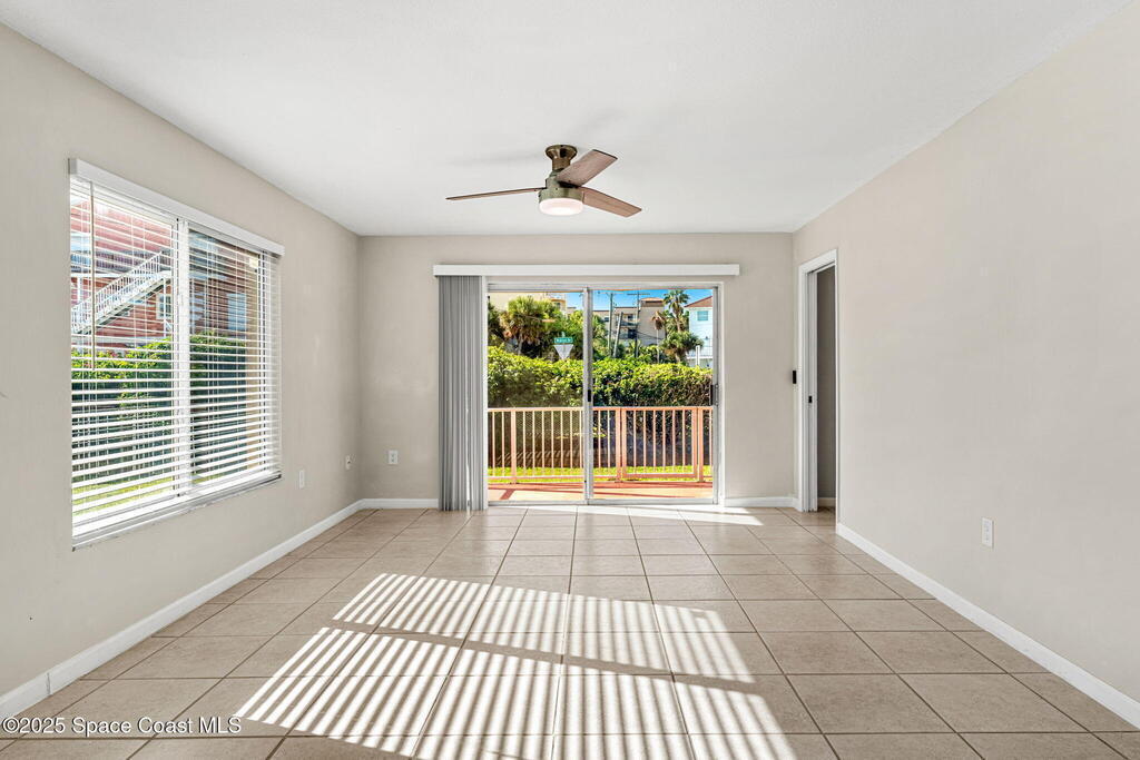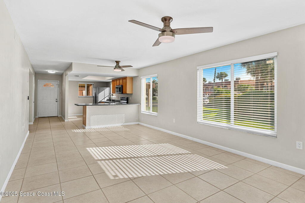 GROUND FLOOR CAPE CANAVERAL 2/2 WITH LOTS OF NATURAL LIGHT...ONLY 500 STEPS TO THE BEACH AND NO ROADS TO CROSS!!! This ground floor 2/2 features all tile flooring, wood cabinets, stainless appliances, and new paint throughout. It's the easternmost end unit with multiple large windows and sliders leading to a spacious private patio in an oceanfront community with a pool and covered parking. The side yard to the unit is beautifully green with privacy hedges lending the feel of having your very own slice of paradise with ocean breezes and sounds passing through. The primary bedroom has a beautiful new vanity and boasts a walk-in closet and tiled walk-in shower. Washer and Dryer in unit. Super convenient to Space Center and 528. Walk to Cape View Elementary. NO SMOKING IN UNIT OR PATIO. Also, Association does NOT allow pets. Available Now.