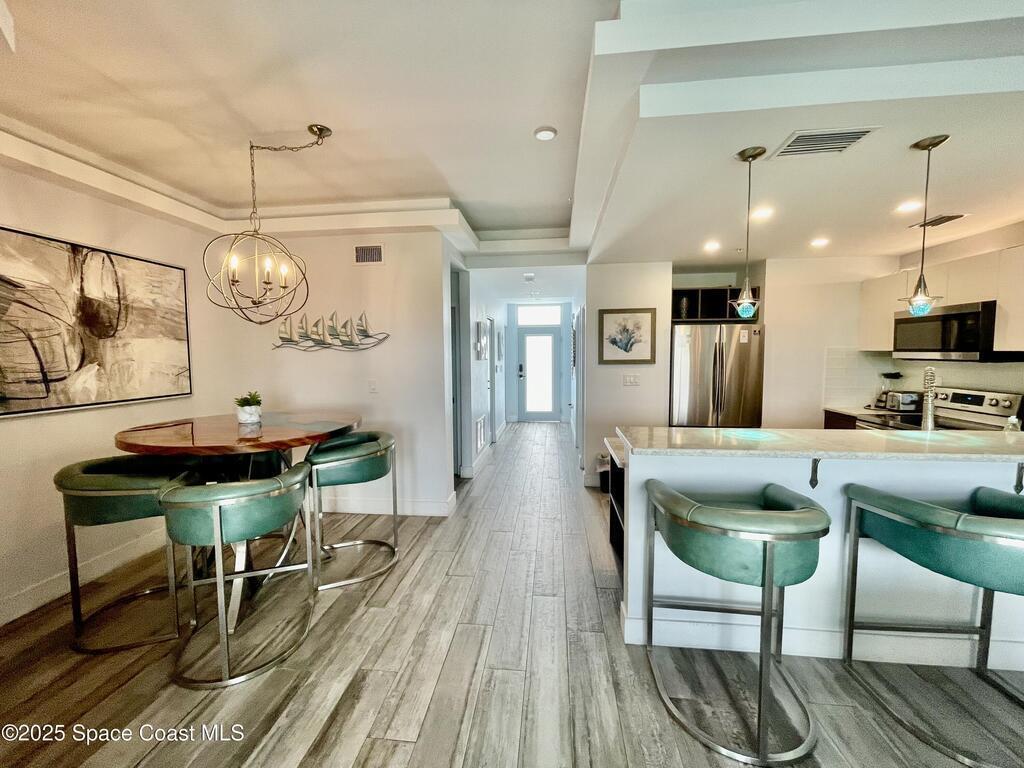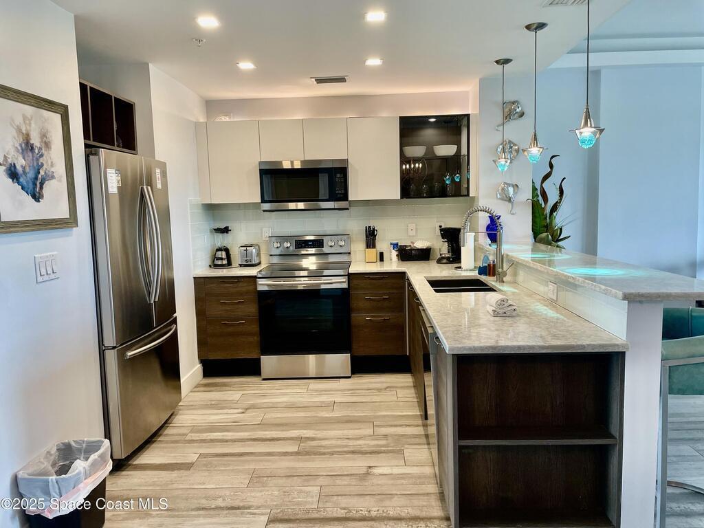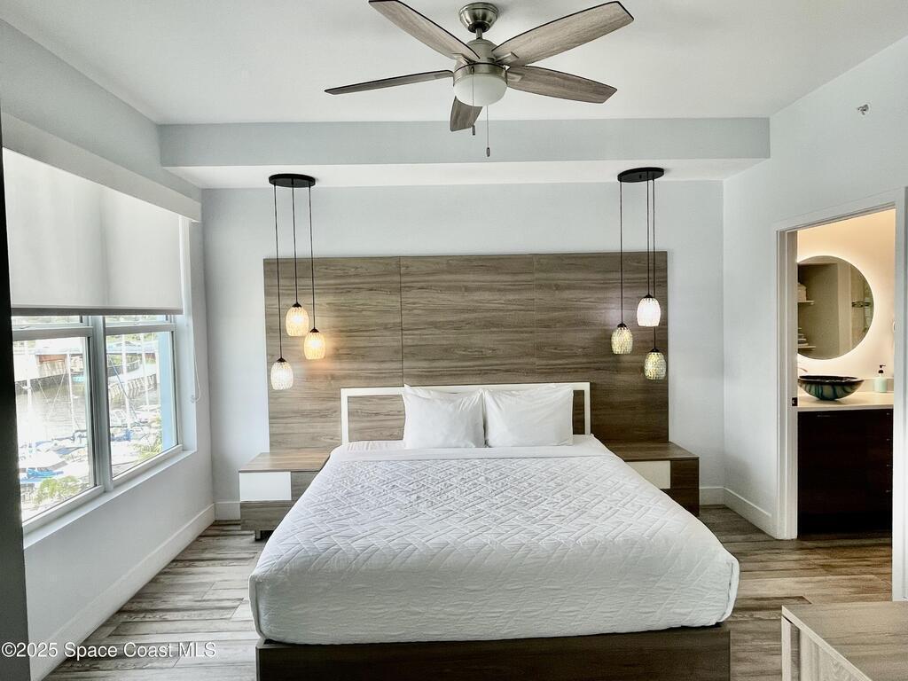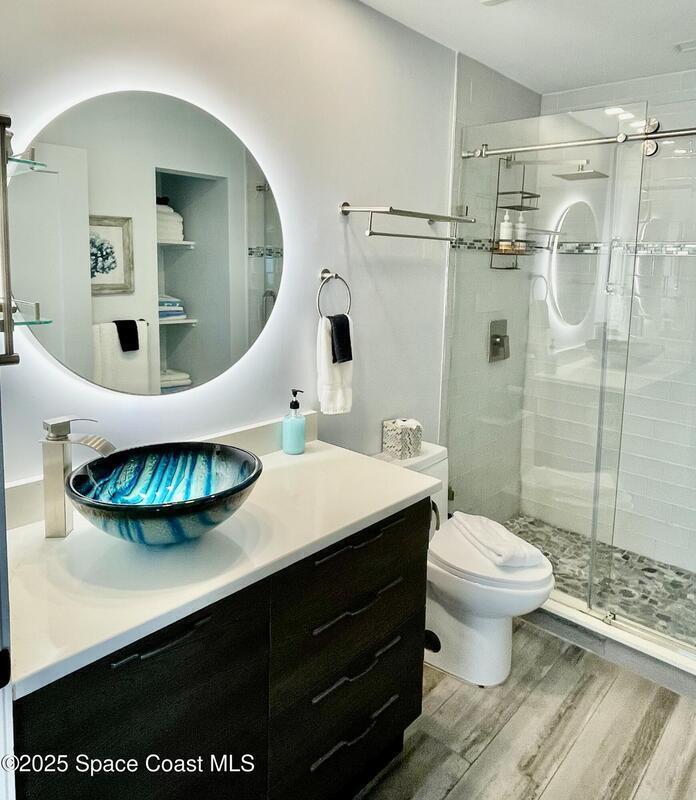 Welcome to luxury resort-style, waterfront living! This 3-bed, 2-bath fully furnished condo offers low-maintenance comfort in a prime location. The open layout features tile flooring throughout, a balcony for relaxing, and a spacious kitchen with ample storage, SS appliances, and quarts countertops. The primary suite includes a walk-in closet and private bathroom. There is a parking garage under the building and in unit laundry. Enjoy community amenities like a sparkling pool with a spa, fitness center, sauna, and on-site restaurant. Short-term rentals are allowed without restrictions, making this a perfect investment, vacation retreat, or full-time home.This waterfront community is situated on a marina and navigable canal to Indian River and Banana River with ocean access. Close to beaches, dining, shopping, Kennedy Space Center, and Port Canaveral!