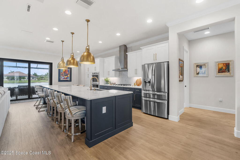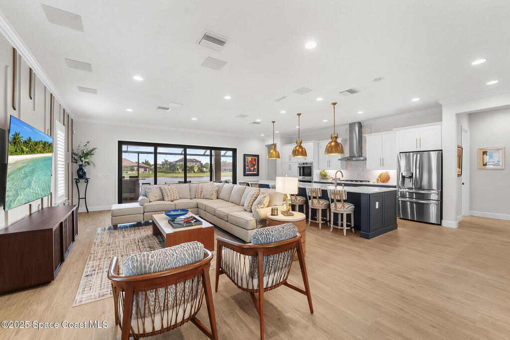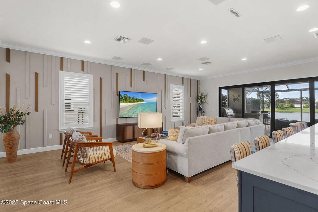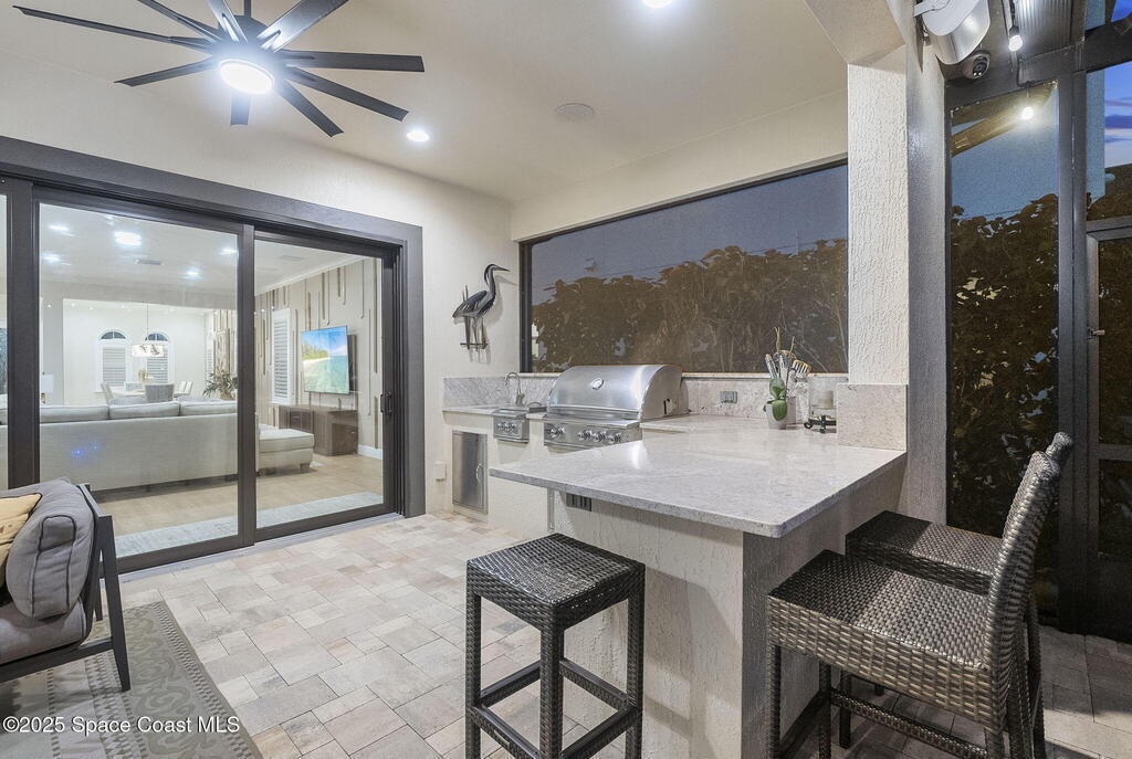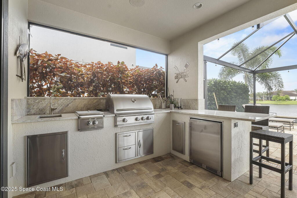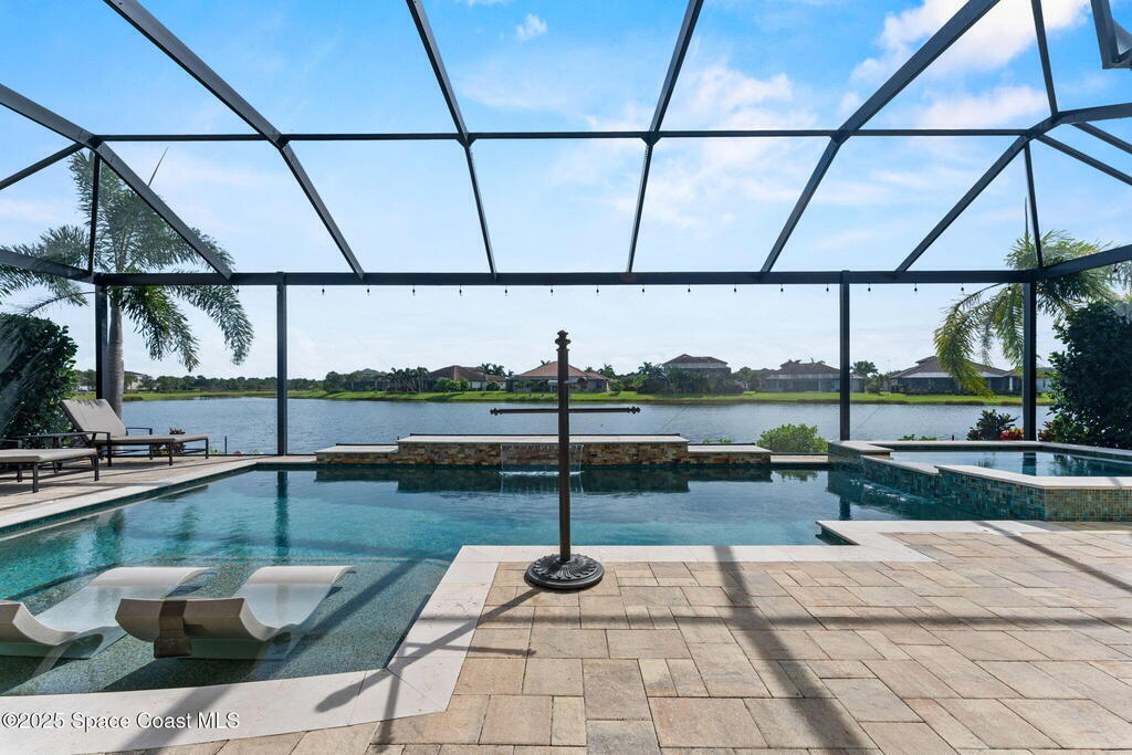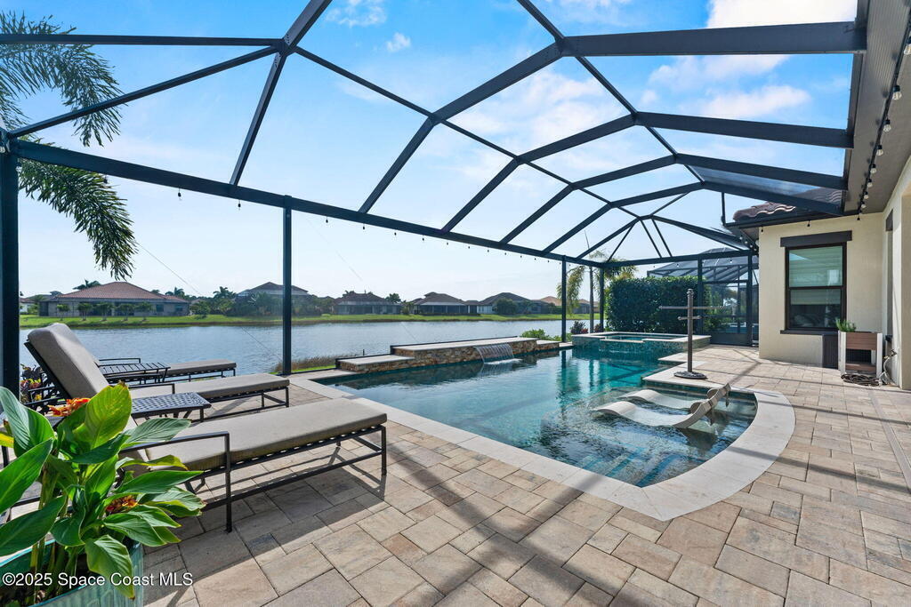 New Price improvement! West Viera Lake front Pool Home in Reeling Park South with so many luxury Upgrades. 1% lender credit when you use our preferred lender!! Designed for Florida living, showcasing a Stunning pool & spa over looking the water, amazing outdoor kitchen, tile roof & hurricane-impact windows & doors. The oversized 2-car garage w/golf cart space adds convenience, while whole-home surround sound extends indoors onto the back patio for seamless entertaining. Entertain in a gorgeous chef's kitchen w/stunning 16-ft quartz island, Restoration Hardware pendant lights, SS appliances & abundant storage overlooking a spacious great room. The private primary suite features walk-in closet & spa-like bath, while 2 guest bedrooms & baths provide comfort & flexibility. Modern upgrades shine thru-out. Residents enjoy a prime Viera location near The Avenues, Shopping, Dinning, golf, schools & beaches, Addison Village amenities including clubhouse, fitness center & resort-style pool!