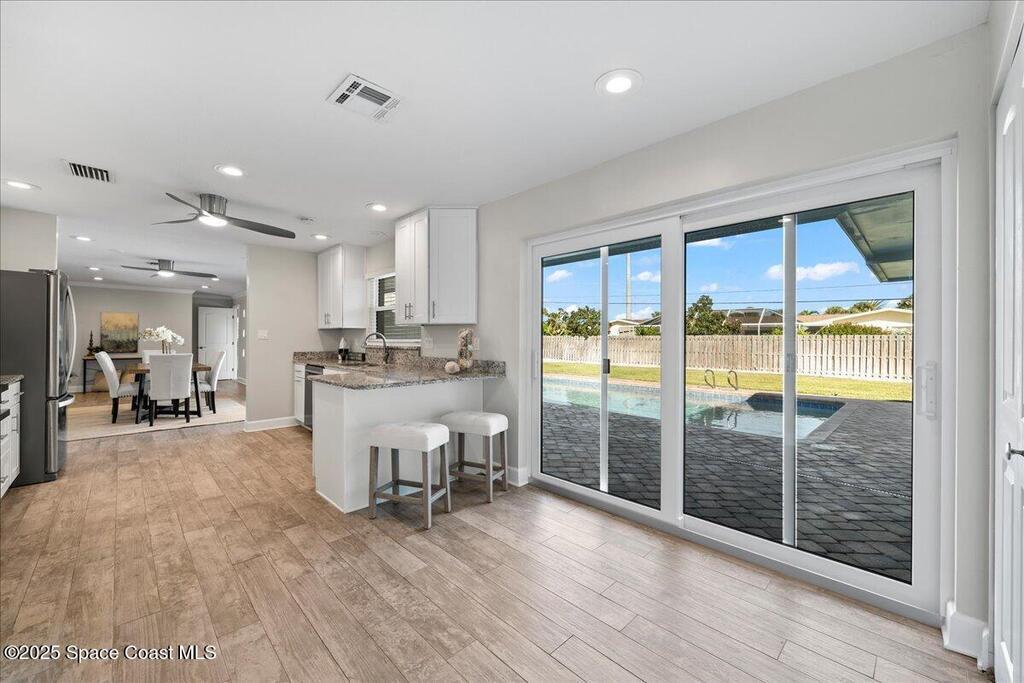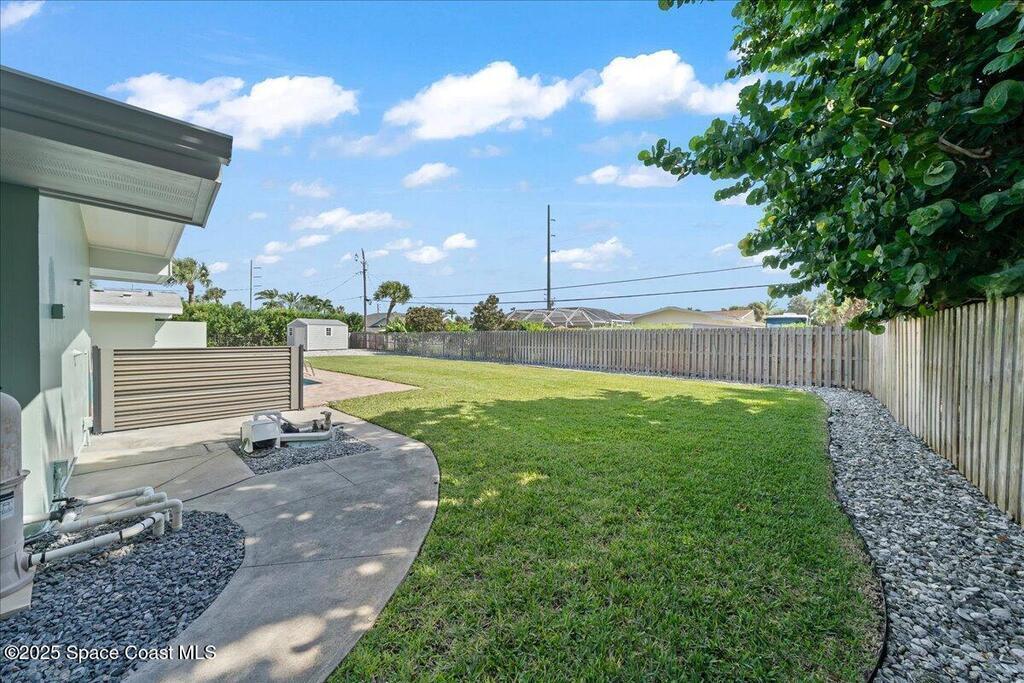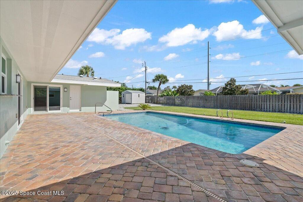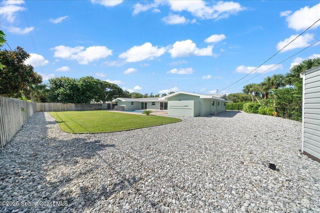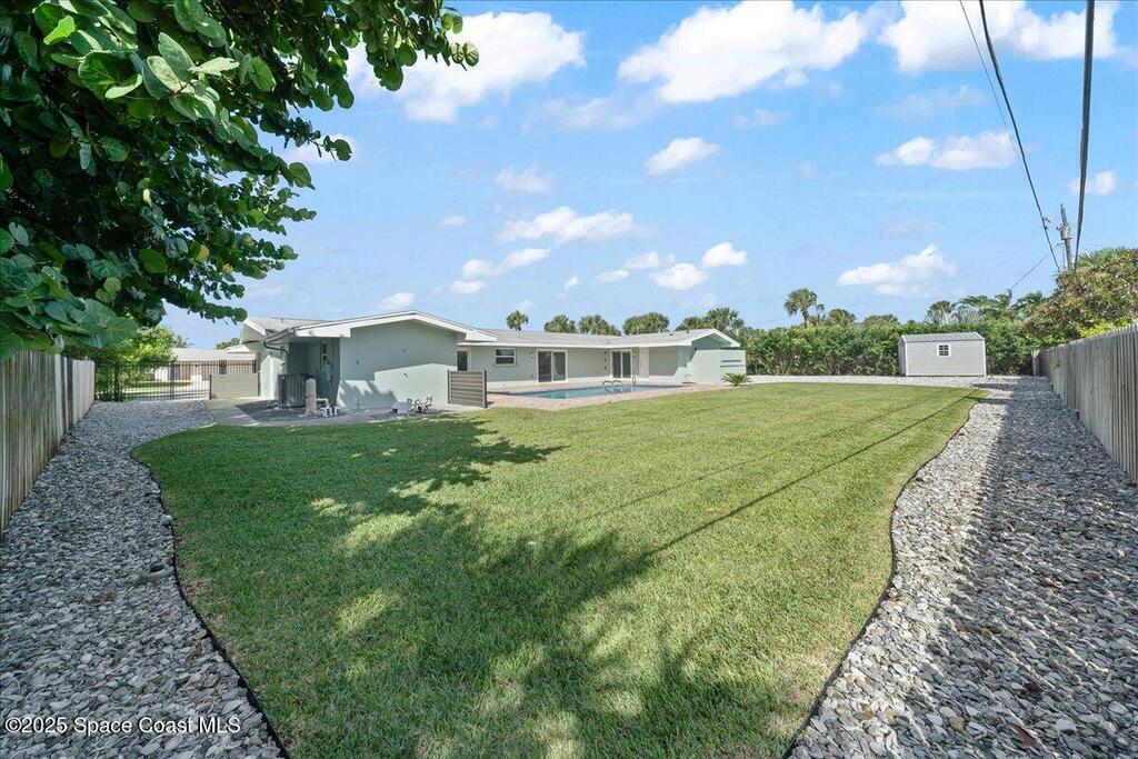 Discover this beautifully renovated pool home situated on .37 acres in the highly desired SOFA area of Melbourne Beach! This 4-bedroom, 3-FULL bathrooms, concrete block residence offers exclusive beach access shared with just 20 other homes, allowing you to reach the sand in a quick 5 minute walk. Enjoy features like wood-look tile flooring throughout, a wood burning fireplace, hurricane impact windows and doors, as well as updated electrical & plumbing and a 2020 HVAC system! The kitchen boasts ample storage with a pool view, while the laundry room includes an extra refrigerator! Outdoors, relax in the spacious east-facing covered lanai, listen to the ocean waves, or take a dip in the large pool surrounded by a paver deck and fully fenced yard, complemented by a storage shed and low-maintenance xeriscaping. With gates on both sides, there's ample room for a boat or RV, a huge circular driveway for family gatherings, and an oversized 2-car garage for all your beach gear. Conveniently
