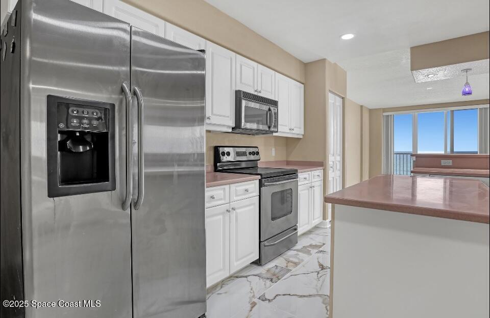 Experience the Ultimate Florida Luxury Lifestyle in this stunning oceanfront corner unit with breathtaking, panoramic views of the Atlantic! This condo offers THREE CAR GARAGE space and over 2, 500 sq. ft. of living space, featuring 3 bedrooms + a flex room in a desirable split floor plan. The spacious primary suite boasts his-and-hers walk-in closets, a private ocean-view balcony, and a well-appointed ensuite bath with a tub and shower. The open-concept great room is bathed in natural light, seamlessly connecting to the kitchen, which offers a large island, breakfast nook, and ocean vistas perfect for entertaining. Enjoy exclusive resort-style amenities, including private beach access, a clubhouse, a sparkling oceanfront pool, Don't miss your chance to own a piece of paradise--schedule your private showing today!