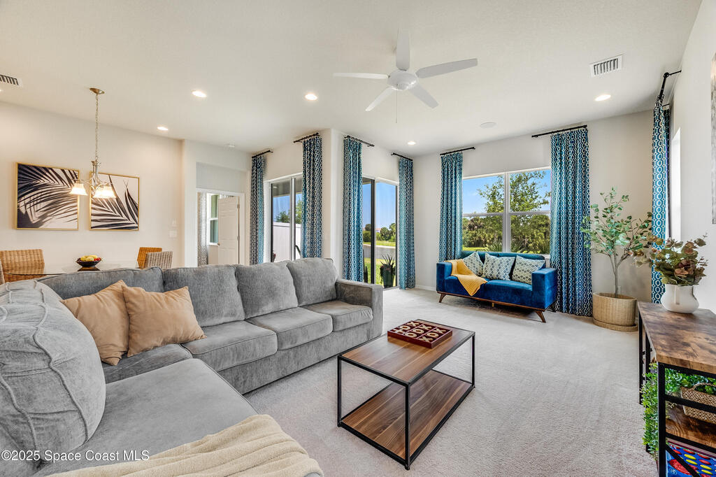 Previously showcased as a model home and now ready for its next chapter, this beautiful 3BR/2BA Saratoga II model is the same open floor plan as the Emerald in Pangea Park and features a spacious family room, gourmet kitchen with quartz countertops, designer backsplash, and high-end SS appliances. It's on a premium lot with tranquil water and nature preserve views right in your backyard. Upgrades include recessed lighting, ceiling fans, ceiling speakers, and Sonos system throughout the home and lanai. HOA fees include landscaping, roof, internet and basic cable through Spectrum. Access to Addison Village amenity center with clubhouse, pools, gym, tennis courts, and more. Close to shopping, restaurants, and entertainment. Carefree living at its best.