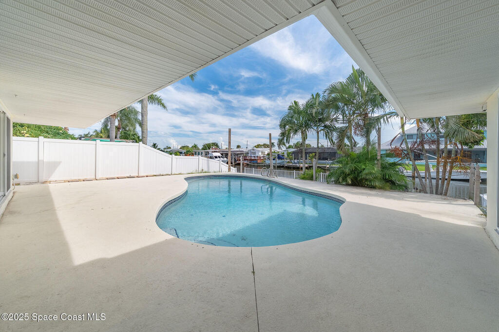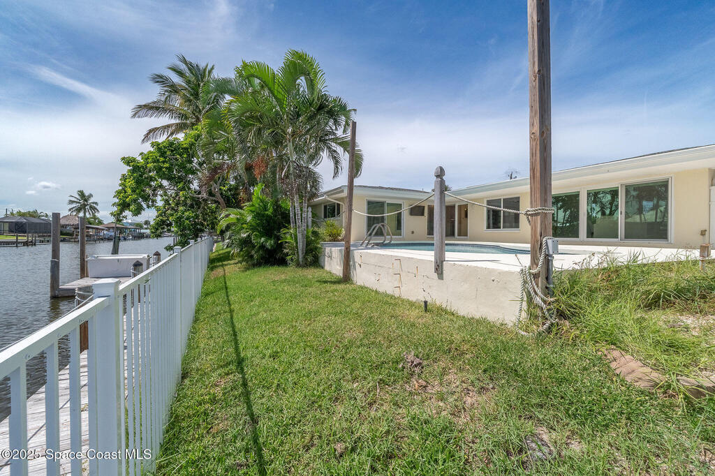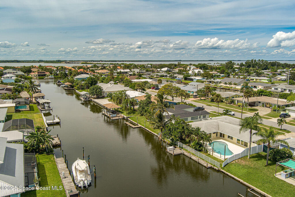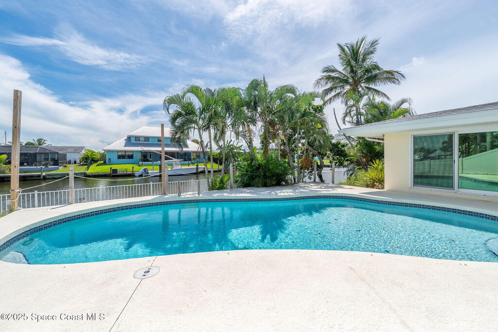 Experience coastal elegance in this stunning sanctuary. Nestled on a deep-water, wide, canal, this waterfront retreat offers breathtaking views, sunsets and direct boating access to the Banana and Indian Rivers. The backyard oasis features a sparkling pool with serene water vistas, perfect for relaxing or entertaining. Inside, an open concept design flows seamlessly through the kitchen, living, and dining areas, all capturing panoramic water views. A spacious 19x17 bonus room offers endless possibilities--ideal for a home office, gym, or additional bedroom that could also be turned back into a two car garage. The luxurious primary suite provides a private waterfront escape with an elegant en-suite bath. Peace of mind is ensured with all hurricane impact windows and sliders installed recently. Embrace Florida's coastal lifestyle at its finest in this exceptional residence. Roof 2014, windows and sliders 2023, deck, dock addition and seawall 2007.