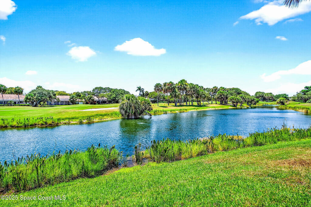 Welcome to Osprey Villas at Aquarina Beach & Country Club - where sweeping golf and water views meet resort-style living. Tucked at the end of a quiet cul-de-sac, this spacious 4BR/3BA villa offers one of the largest floor plans & effortless indoor-outdoor living. Enjoy golden sunsets & tranquil water views from almost everywhere. The main level features vinyl plank flooring, impact windows/sliders, a generous living/dining area, eat-in kitchen, owner's suite with direct access to the pool, guest room/den plus a full bath. Upstairs, 2 bedrooms, a guest bath, loft office, and media/bonus room create a perfect space for hosting family & friends. With a newer roof (2024), 2 car garage & panoramic views throughout, this home is a rare opportunity & ideal seasonal escape.Enjoy beach, golf, tennis, fitness, riverfront amenities in this gated ocean-to-river community offering resort-style living on Florida's Space Coast, where rocket launches & sea turtles hatchlings are part of the view.