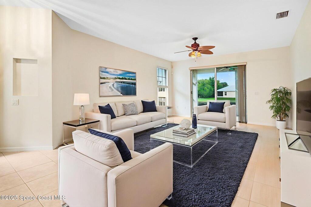 Live the Florida Lifestyle and Feel Like You are Always on Vacation! Nestled in the Highly Desired 55+ Gated Community of Osprey Village in N Merritt Island, This Beautiful Home Boasts an Open Concept Floorplan with Water Views to the Pond & Fountain. Enjoy SFH Living with the Convenience of a Maintenance Free Lifestyle! The Assoc. Covers ROOF Replacement, Cable & Internet, Ext. Maintenance (Inc Painting), Landscaping, Heated Pool, & a Bocce Court. The Spacious Kitchen Provides Plenty of Prep Space, Storage & a Walk-In Pantry! Relax In the Large Primary Suite with Water Views (and Sliders to the Lanai) There are Two Walk-In Closets & Bath Features a Walk-In Shower, Garden Tub, a Double Sink Vanity, & Linen Closet. Convenient Location Close to the Savannahs Golf Course, Beaches, Port Canaveral, Shopping, Dining, Medical Facilities, and Easy Access to SR 528 to Orlando Intl Airport! Don't Miss This One!