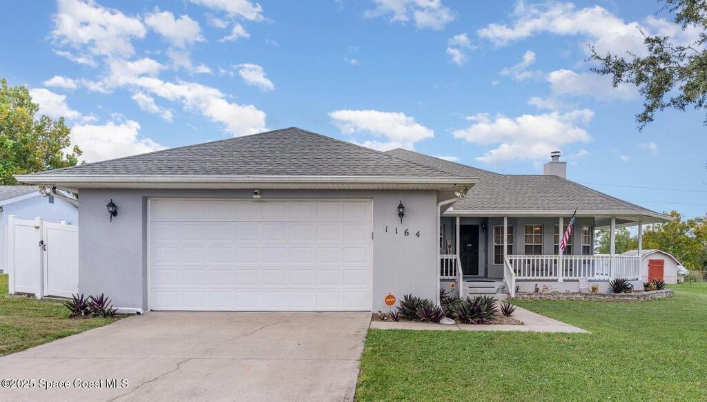 Welcome home to this beautifully designed 2, 144 under air split floor plan near Indian River and filled with thoughtful upgrades throughout. Inside, you'll find new Hunter ceiling fans in every room, wood laminate floors, honeycomb blackout blinds, a spacious 45x11 bonus room with electric shades, and a primary suite with a jetted tub. The dining room features a cozy wood-burning fireplace, while the 2016 A/C, 2019 roof, and 2024 water heater provide peace of mind. New stove December 2025. For added safety, the home offers both a reinforced safe room and a secondary safe closet with fire doors. The oversized 2 car garage, and the pull down attic access with wood flooring provides extra storage. Outdoors, enjoy a large wraparound front porch, white vinyl privacy fence, hurricane shutters for all windows and the rear door, a sprinkler system, a treated wood deck perfect for entertaining, and a spacious shed. This move-in ready home combines comfort, security, and style at every turn.