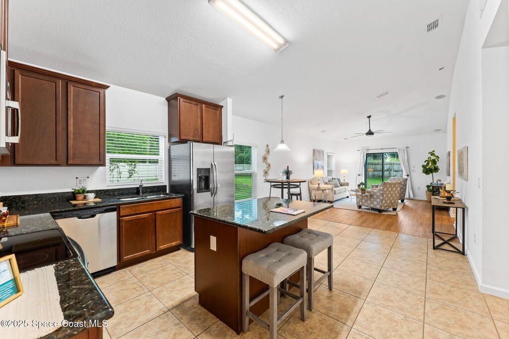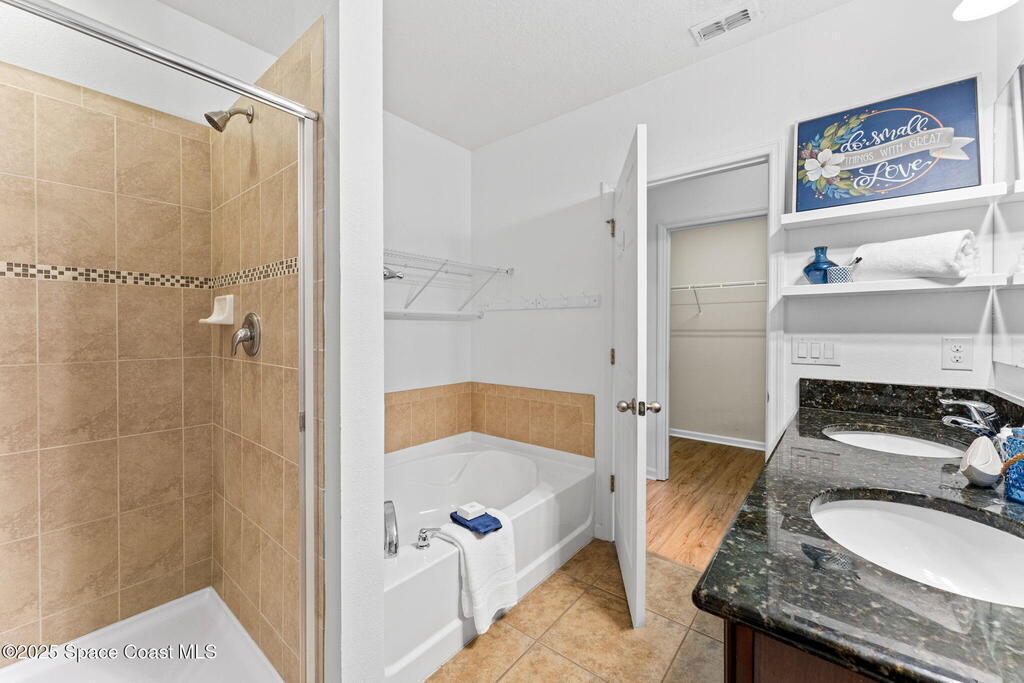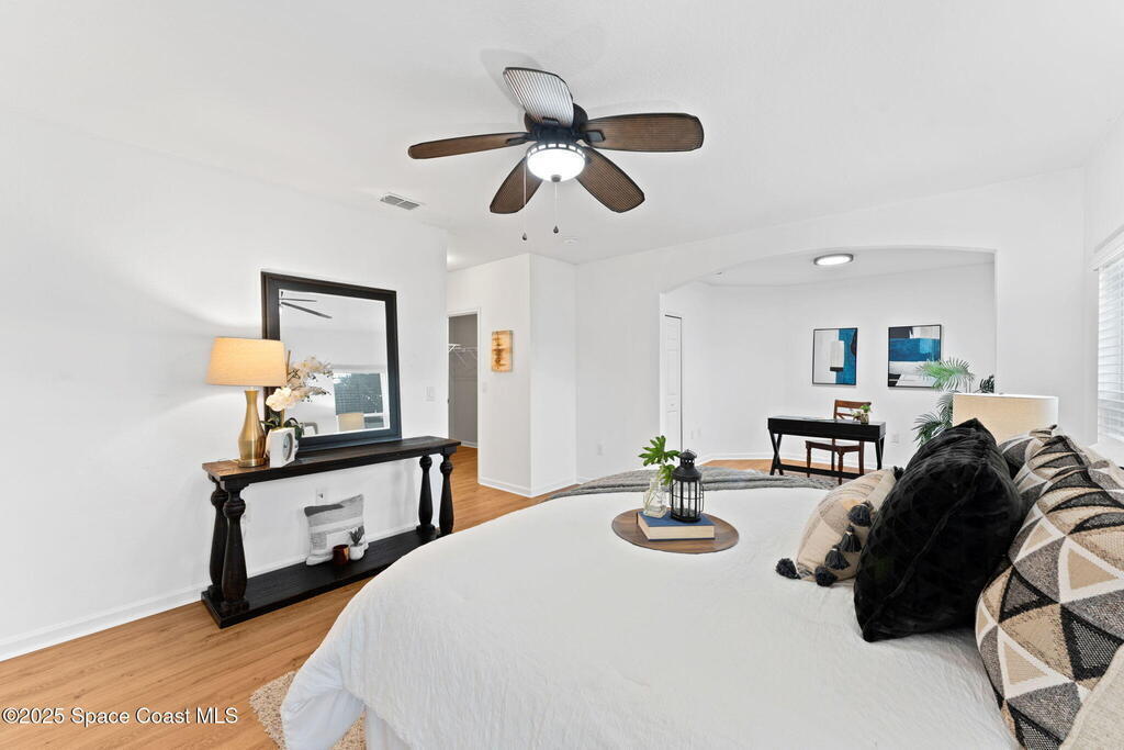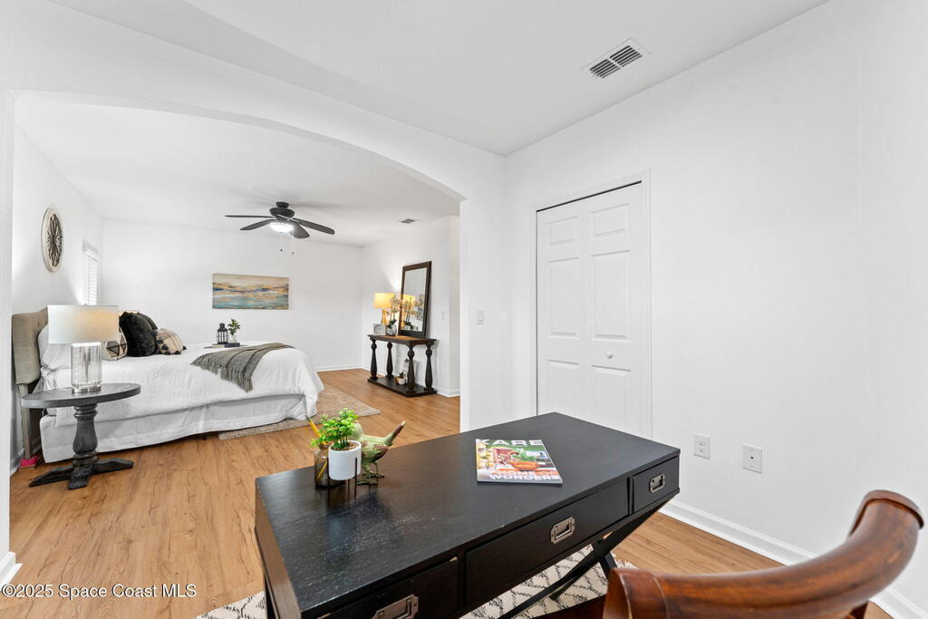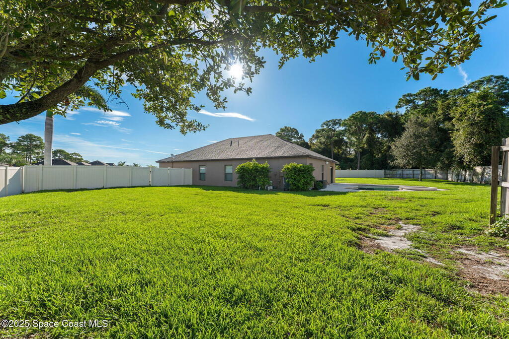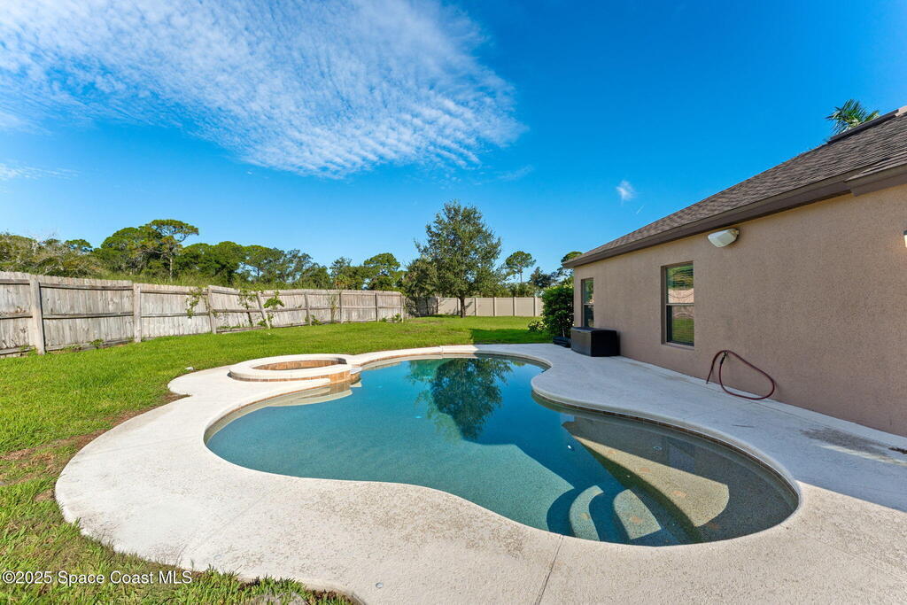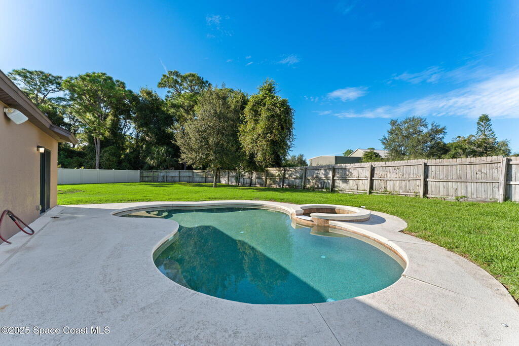 Tucked at the end of a cul-de-sac on an oversized lot, this home is all about good living. Inside, you'll find brand-new tile plus laminate floors, an open floorplan that flows with ease, and a kitchen built for connection- think island, breakfast bar, and a cozy eat-in nook. The split-bedroom layout delivers privacy, while the primary suite goes next-level with its own FLEX space - perfect spot for an office, spin bike, reading nook, or whatever vibe you're into. Interior perks like surround sound speakers keep the energy high, and out back a huge yard sets the stage for all your outdoor dreams-complete with a sparkling salt pool and spa. With a propane tank on site for spa heating, a shed for your extras, a new HVAC, and manual storm shutters, this one nails the balance of comfort, convenience, and vacation-mode living!