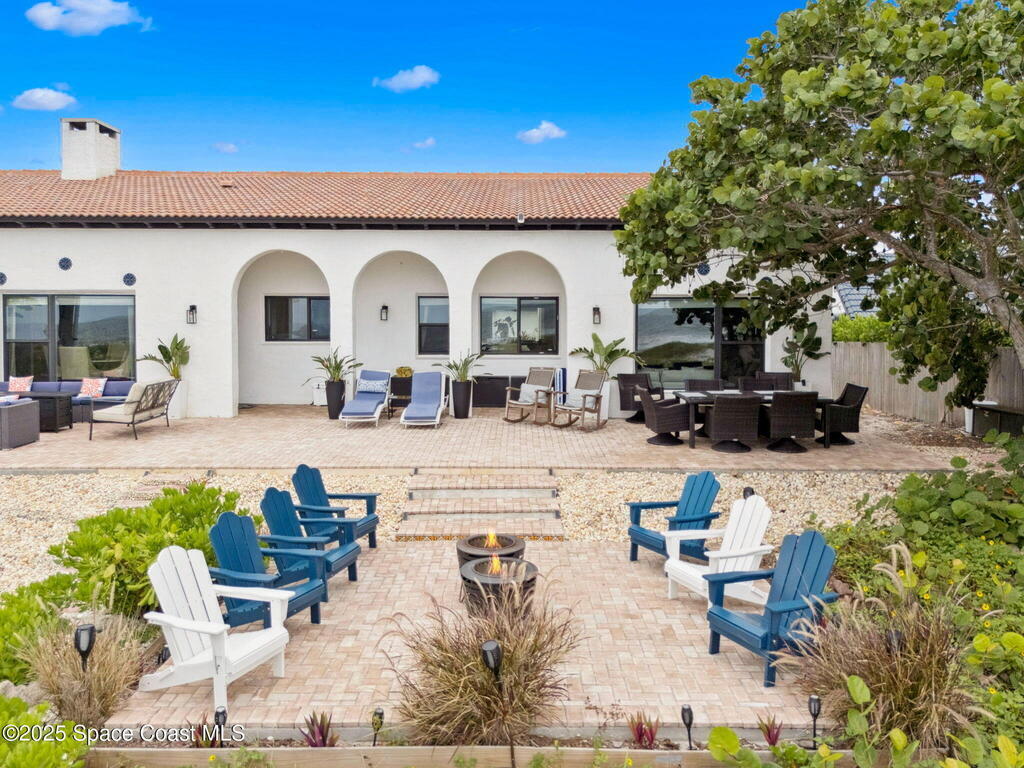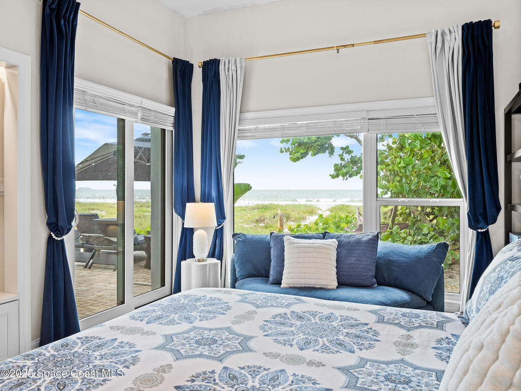 Direct Oceanfront Hacienda with Private Beach Access. Experience the ultimate coastal retreat with this one-of-a-kind Hacienda residence boasting 100 feet of direct ocean frontage in Cocoa Beach. Enjoy sweeping Atlantic views and your very own private beach access just steps from your backyard.The main home showcases timeless architectural design with soaring 10-foot ceilings, rustic wood beams, classic tile floors, and a warm fireplace in the family room. Recent updates include a beautifully renovated kitchen with quartz countertops and refreshed bathrooms, blending modern elegance with enduring charm. A private courtyard pool creates the perfect setting for entertaining, while a detached guest house offers additional space for family, friends, or guests. Currently operating as a licensed Airbnb, this property generates consistent income, making it an ideal combination of personal sanctuary and smart investment.