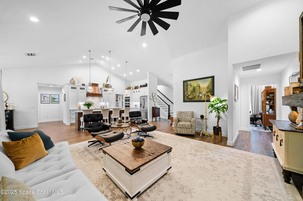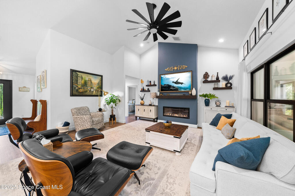 Welcome to this stunning 4-bedroom 4-bathroom(plus office)(plus multi-generational area), modern farmhouse built in 2023, offering 2, 901 square feet of thoughtfully designed living space on over half an acre of Florida beauty. Set amid native pines and palms, this home effortlessly combines clean, contemporary lines with natural textures, making it equally suited for relaxed family living and elegant entertaining. Step inside the expansive great room where vaulted ceilings, rich wood-look flooring, and a dramatic fireplace create an airy, welcoming ambiance. The gourmet kitchen is a chef's dream, featuring an oversized quartz island, induction stove top, custom range hood, and abundant cabinetry. A dedicated office with French doors provides a private and light-filled workspace for working from home or studying. Designed with flexibility in mind, the home features a true multi-generational suite with a private bedroom, full bath, and its own living room. Hurricane Windows.