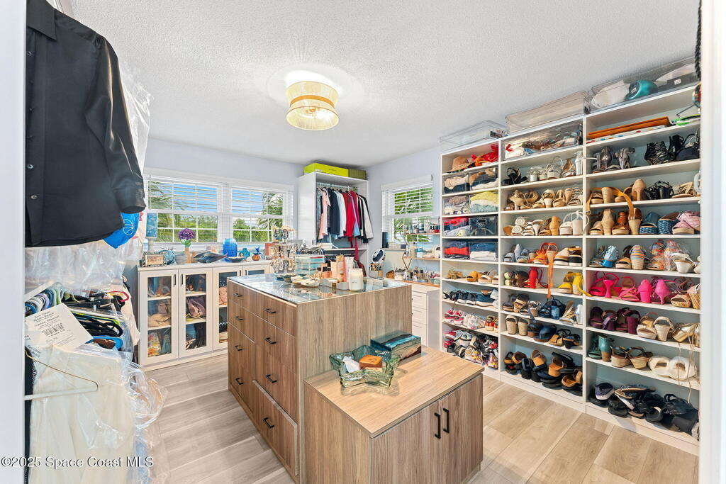 Life on the water takes center stage with 195 ft of canal frontage, two docks including a lift & deep-water access ready for boating. The outdoor spaces feel like a private resort with a custom-shaped pool, hot tub, screened lanai, sun deck & full pool bath designed for endless gatherings by the water. Inside, a reimagined kitchen frames Indian River views w/ quartz countertops, Thermador appliances, a True fridge, an island w/ electric cooktop plumbed for gas stub in, wine bar & coffee station. Luxury vinyl & terrazzo floors flow through the living spaces, anchored by a wood burning fireplace. Upstairs, the primary suite captures wide water views w/ a granite dual sink vanity, dual shower heads & pocket door bath. A guest suite offers a remodeled en suite w/ tub & shower, while additional bedrooms provide flexibility, including one redesigned as a full custom closet. With a new pool heater, 3 mini splits & thoughtful upgrades, this property embodies the full waterfront lifestyle.