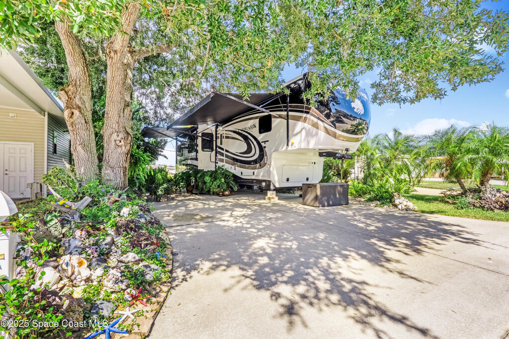 Build your dream retreat on this beautiful lot in Willow Lakes RV & Golf Resort, a premier 55+ active lifestyle community. This property features lush tropical landscaping, a private setting with lake views, and a large paver patio ideal for relaxing or entertaining. An RV hook-up is already in place, making it ready for your immediate enjoyment.Residents of Willow Lakes enjoy resort-style amenities including golf, a heated pool, pickleball, tennis, clubhouse activities, and more. Conveniently located close to pristine beaches, shopping, dining, and major airports, this community also offers a truly unique experience -- watch rocket launches right from your own yard!