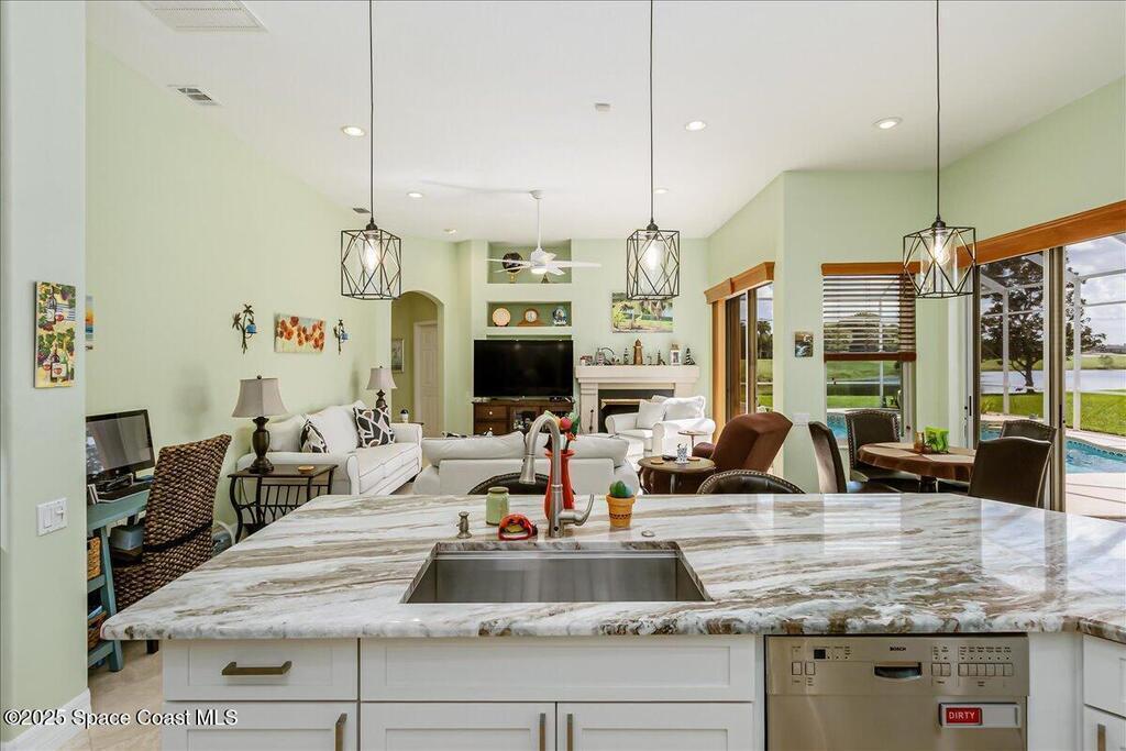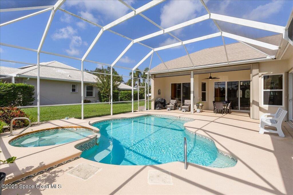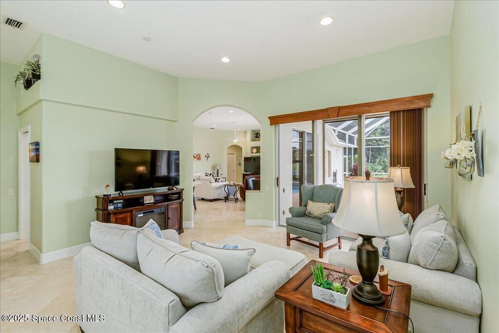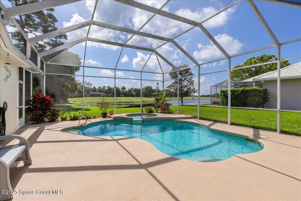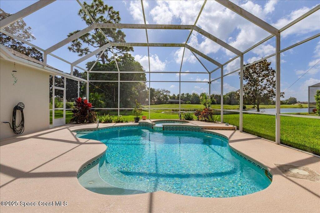 Updated golf course home with relaxing views of lake and 8th Tee. Motivated seller listed below purchase price to allow for repainting if buyer wishes. Open floor plan. Primary suite with luxurious bathroom. In-law/Junior suite with full bath and large walk-in closet! All the big ticket items have been done by current owner, HVAC, Windows, gutters, pool heater, well pump, Kitchen remodel and the list goes on! Ask realtor for list of all upgrades. This home has zero clearance entry thru double front doors and in Primary shower. No steps. Higher ceilings, split bedroom plan. No carpet or LVP. All ceramic/travertine tile. Gas cooktop, double wall oven with air fryer and convection features. Pull out shelves in cabinets. Laundry room with utility sink. 2 Pantries. Wi-fi garage door opener as well as front door lock. Expanded Paver driveway and front patio. Accordion shutters for your protection. Lanai and pool are screened in. Electric sun shades!