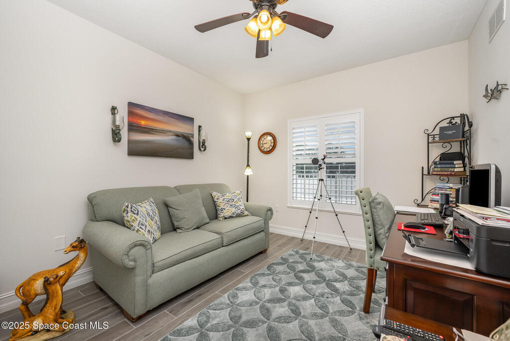 Welcome to River Palms unit 202, a stunning waterfront condo in Titusville offering breathtaking space launches and waterfront views! This meticulously maintained 3 bedroom 2 full bath unit features high-end stainless steel appliances, sleek granite countertops, and a large breakfast bar/island. Enjoy premium adjustable shades to enhance your panoramic water views and elegant plantation shutters throughout. With upgraded interior selections, in-unit laundry with washer and dryer included, this condo is perfect for full-time living, an investment property, or a vacation retreat. Under building assigned space, separately purchased personal garage, and exterior lot spot all included. Located just minutes from Orlando, Kennedy Space Center, the theme parks, and the beaches, you'll have it all at your doorstep. Come take a look...Don't miss this opportunity to own a piece of paradise!