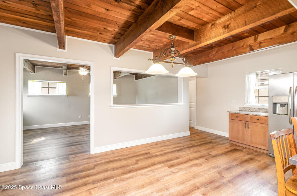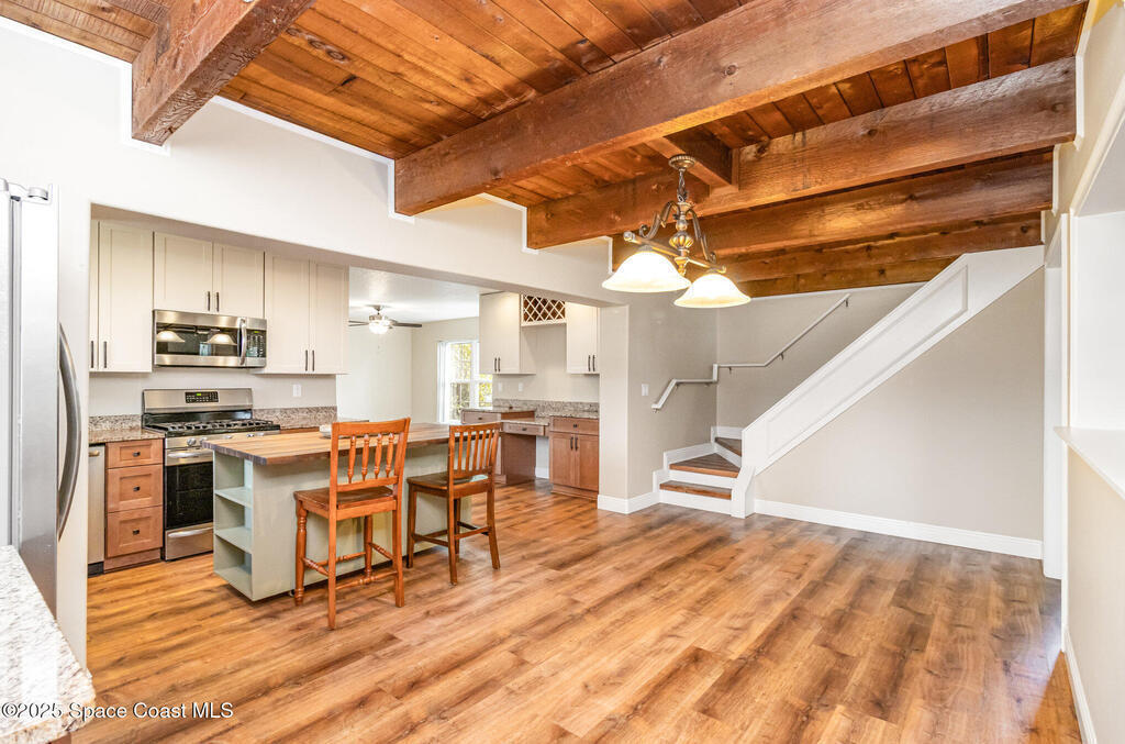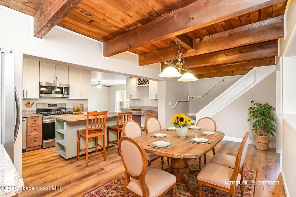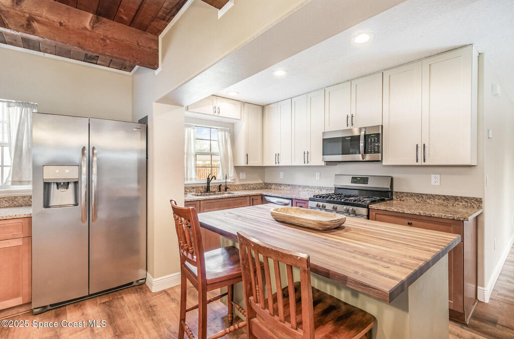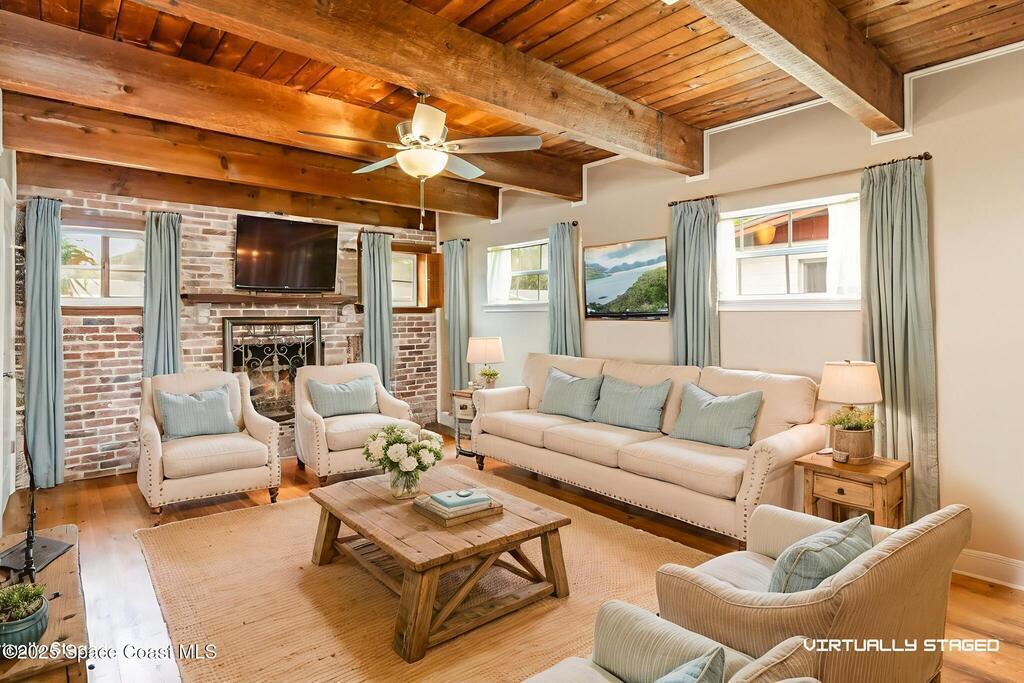 Your Coastal Escape: Modern Comforts + Endless Possibilities! Spacious and updated, this 2, 092 sq. ft. home offers the perfect blend of charm and modern upgrades. Inside, you'll love the warm exposed western cedar planks in the living room, a cozy wood-burning fireplace (chimney rebuilt 2019), and a beautifully remodeled kitchen with granite counters, gas stove, and coffee bar. Major improvements include: BRAND NEW A/C (2025), new septic system (2024), Generac generator (2023), mini-split A/C in the primary suite (2025), water heater (2019) and water treatment with PFAS removal, reverse osmosis, and softener. Outdoor living shines: new irrigation, well pump, lighting, & lush zoysia grass (2024). Property also features 2 driveways, 2-story workshop with covered carport-type work area --perfect for projects or storage and room for your boat and cars. Enjoy peace of mind plus quick access to beaches, Kennedy Space Center, Orlando, maj& or highways. Some pictures virtually staged.