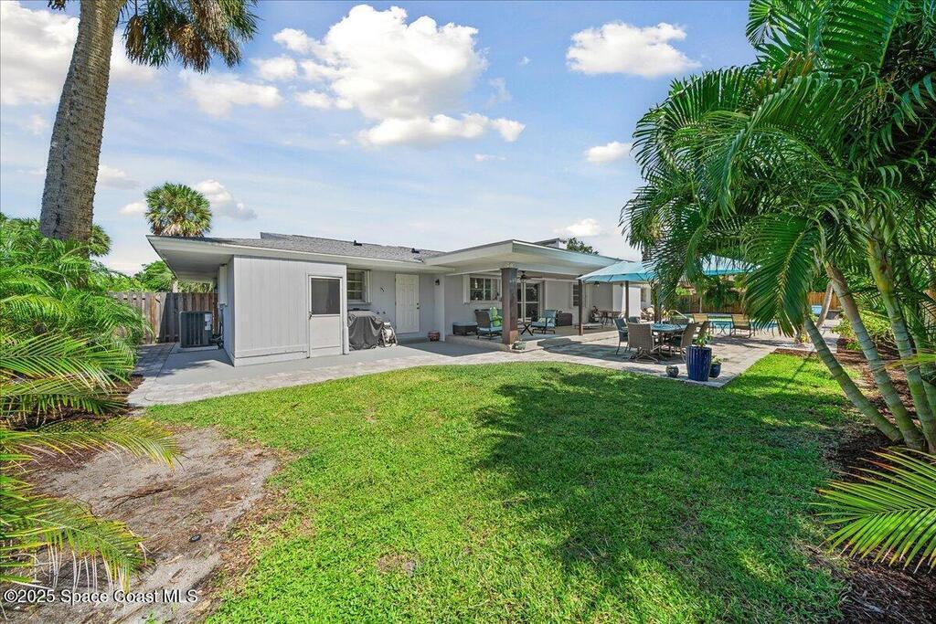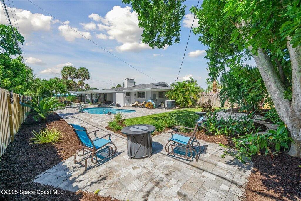 Live on the island in this beautiful mini-resort on Bahama Drive! This incredible home on an oversized .31 acre lot has everything you're looking for! Updated with 3 bedrooms and 2 baths with a separate laundry room and pantry. Enjoy the outdoor shower, rinse off and then relax beside the drybar with wine fridge and electric fireplace. Enjoy a custom tropical landscaped backyard with heated pool. Newly refreshed oversized back patio with a new epoxy surface. Hurricane accordion shutters, 2 hot water heaters, recessed lighting, sky lights and plenty of room on the side of house for a boat or RV. In the heart of Indialantic only minutes walk from the beach and river. This neighborhood has top rated schools and a new Publix, restaurants and shopping center 6 blocks away on A1A with everything you need! Roof 2019, HVAC 2022, Water Heaters 2024/2025. New backyard cedar wooden fence 2025. Termite bond in place.This home is turn key, come have a look and start living the island life!