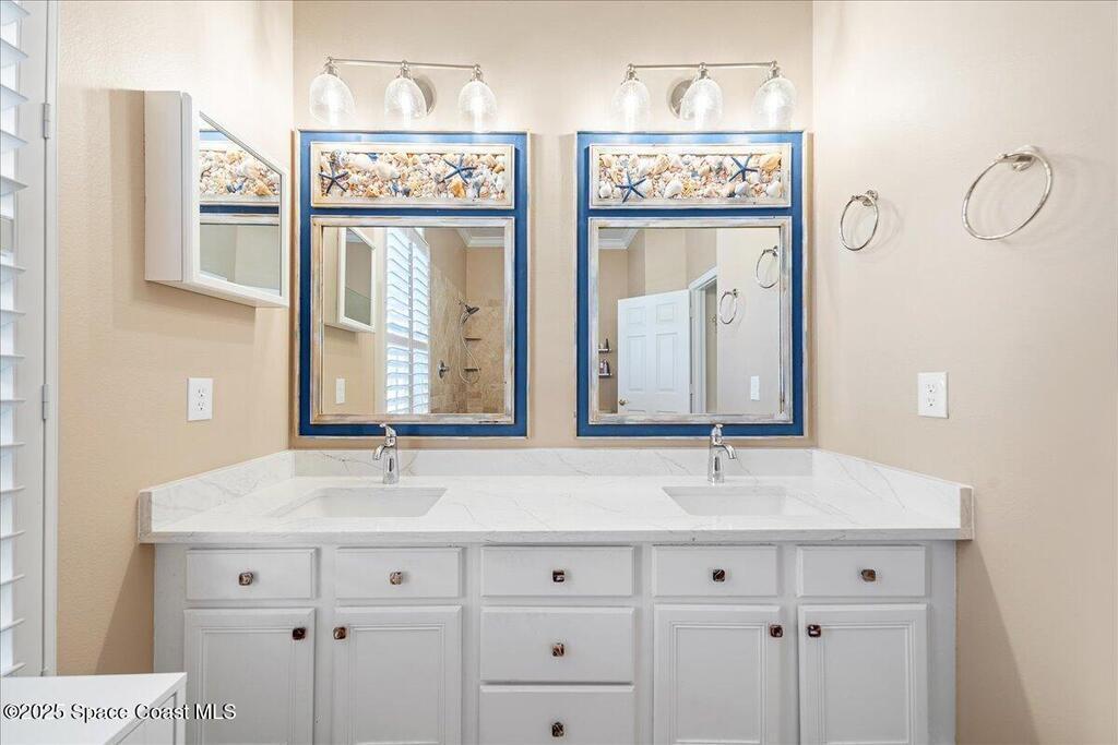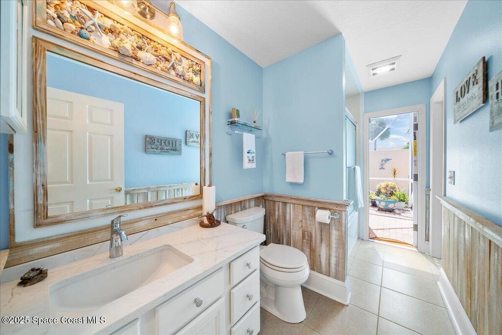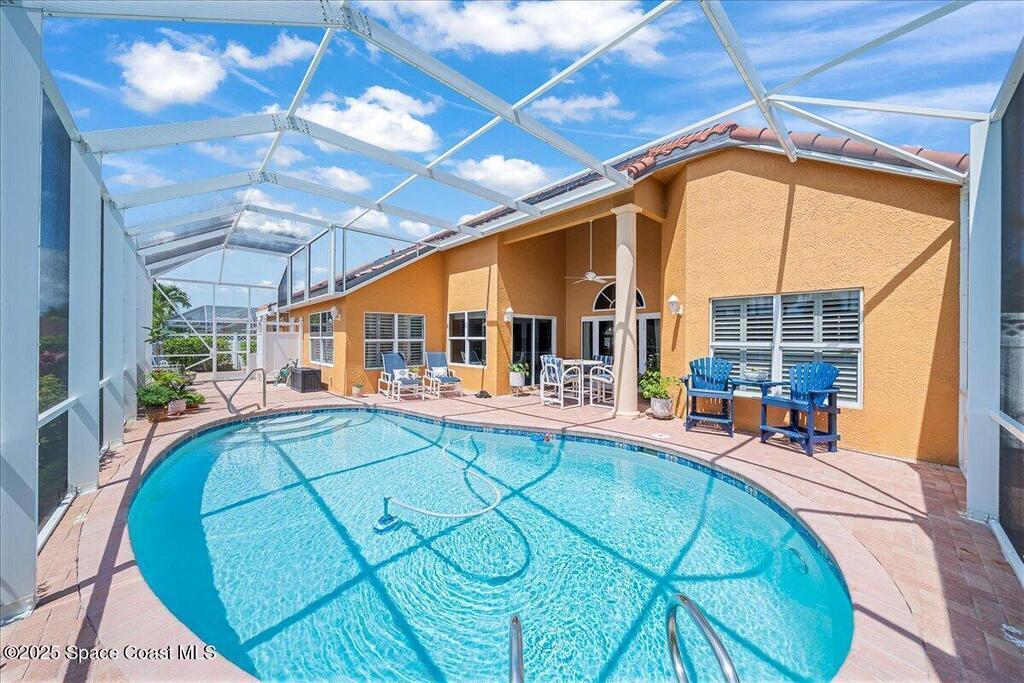 Salt air, sea breezes, and endless sunshine are right outside your door with private community beach access just steps away. This home was made for easy living, with a new tile roof, impact windows, and a newly resurfaced solar-heated pool, you'll never want to leave! Rinse off in the outdoor shower, fire up the grill, and enjoy a low-maintenance backyard designed for more relaxation and less work. Inside, vaulted ceilings and a split floor plan create a bright, open feel. The kitchen has been fully renovated with Bosch appliances, the bathrooms refreshed, and tile throughout. With both living and family rooms, plus a breakfast nook and dining space, there's room to gather, relax, and make every day feel like a vacation! So many updates and improvements, please ask for the full feature list! Most notable: Roof - 2023. Water heater - 2022. AC - 2023. Inside breaker box and outside electrical connection box - 2023