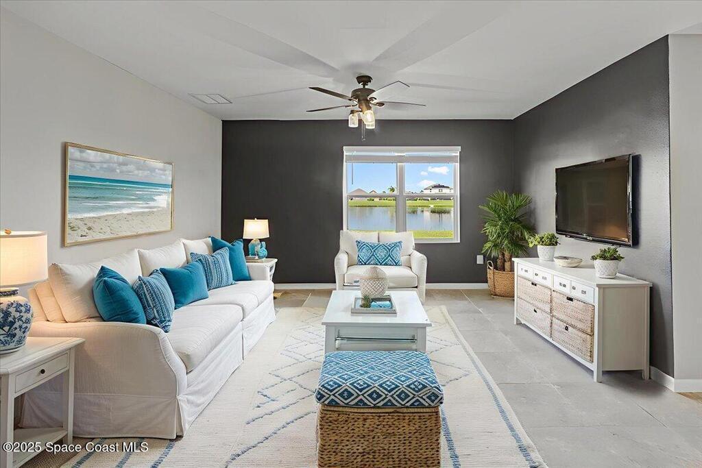 Check out this gorgeous and meticulously cared-for 4 bedroom 2 bath Cali Model lakefront Smart Home! 10 year builder transferrable warranty provides peace of mind on this newer construction lakeview beauty. The neutral color palate makes this easy to decorate and make your own. The floor plan is an open concept that captures voluminous amounts of natural light with lake views from the owner's suite and the main living areas. Main areas have ceramic tile throughout and all bedrooms have brand new carpeting. Owner's Suite offers a large en-suite with double vanity, oversized enclosed glass shower and huge walk-in closet. This Smart Home has all of the bells and whistles! Washer/dryer included. This beauty is located close to Cocoa Village, the beaches, Viera, and less than 45 minutes from all Orlando has to offer.