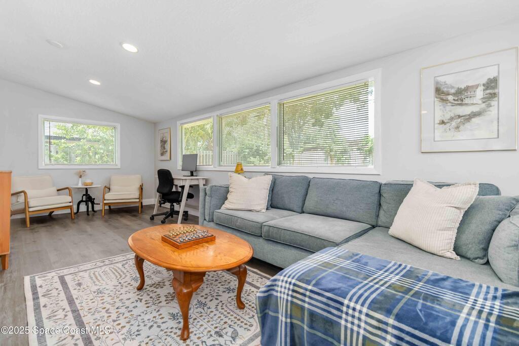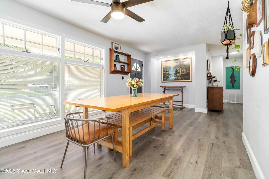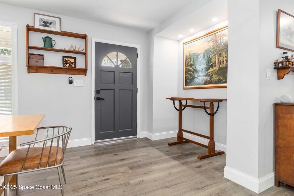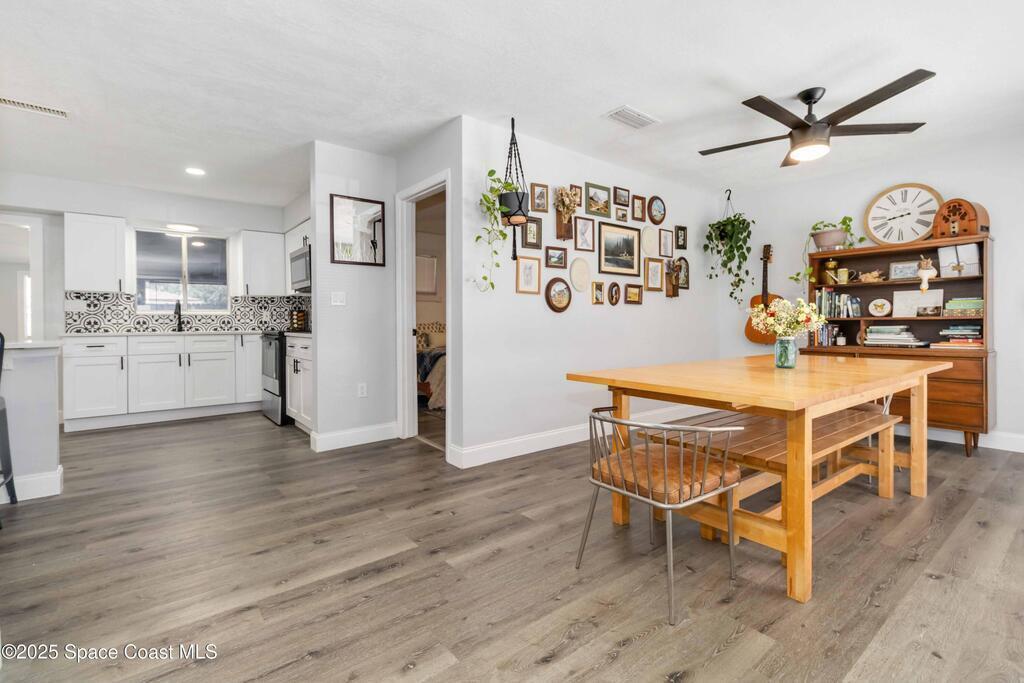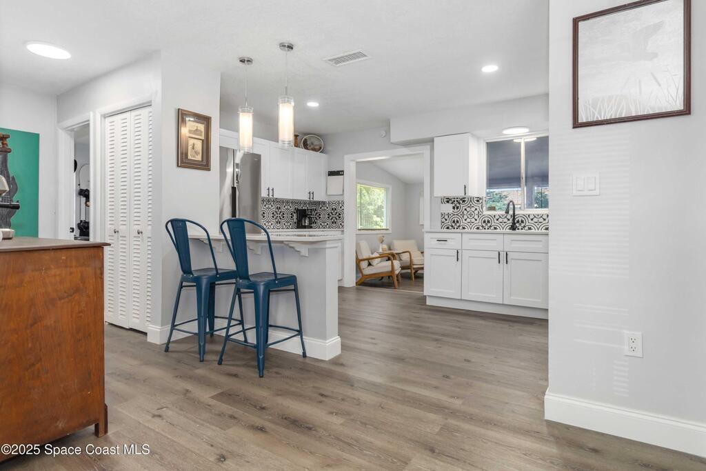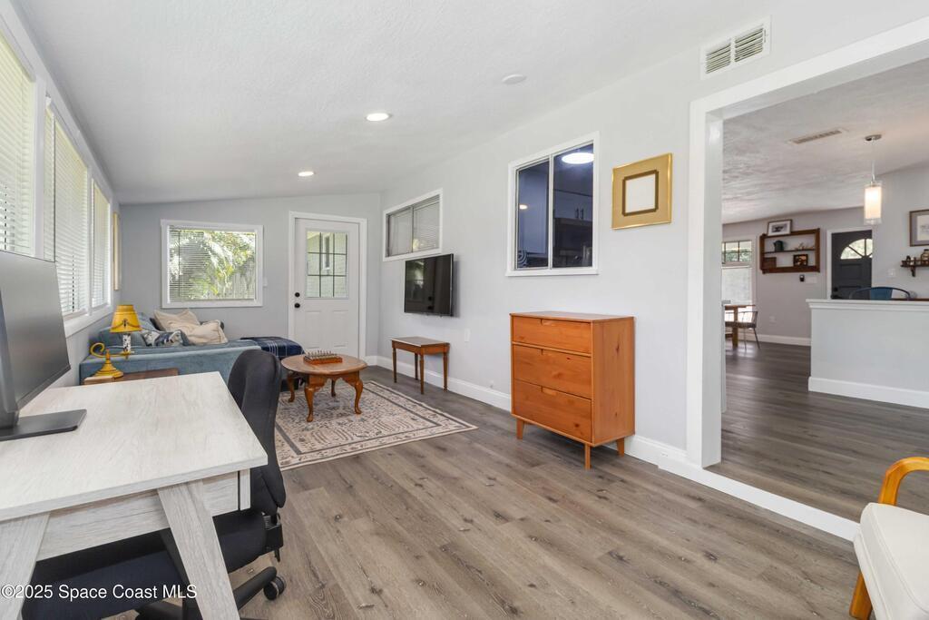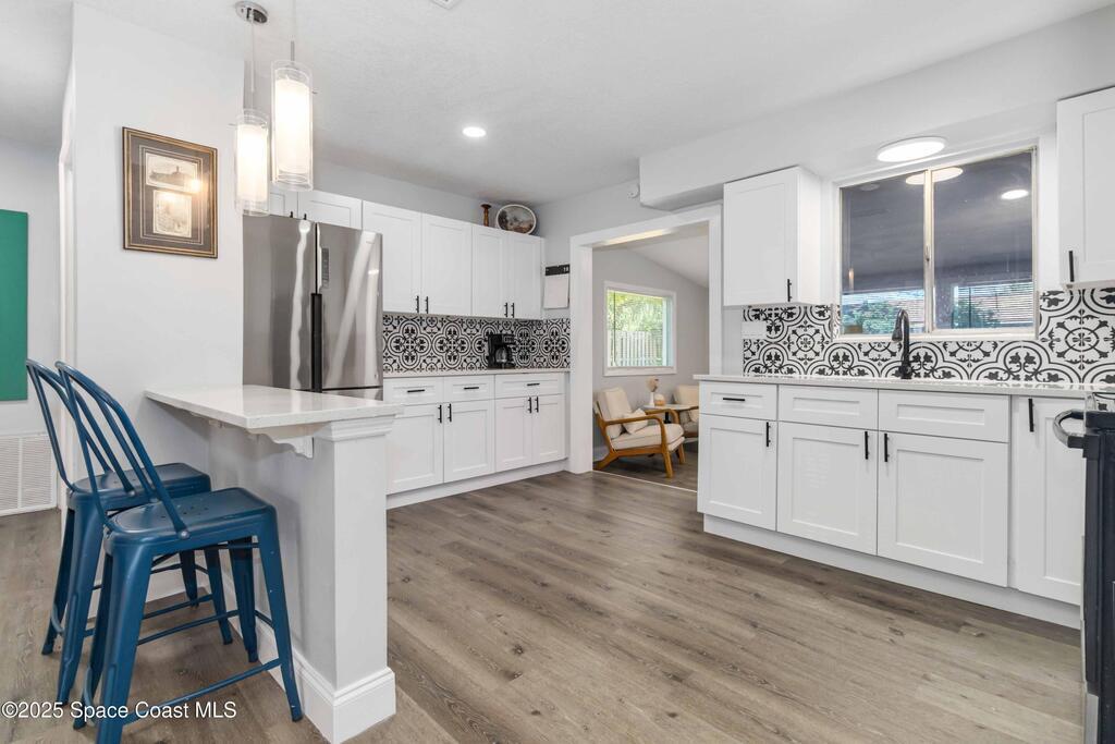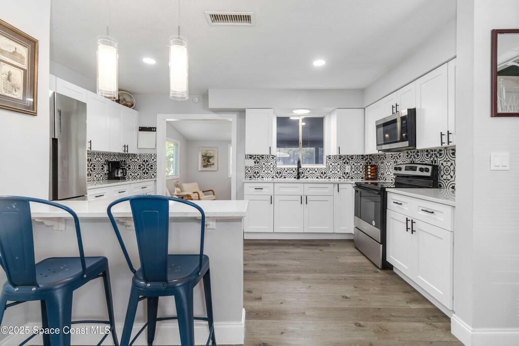 Welcome home! This charming, move-in ready home situated on a quiet street is fully renovated, offering comfortable living with thoughtful upgrades throughout. The interior features luxury vinyl plank flooring throughout & a stylish kitchen with quartz countertops, tile backsplash, stainless steel appliances & modern finishes. The primary suite includes a private bath with tiled walk-in shower. Light & bright living room, just off the kitchen, provides a spacious living space - perfect for relaxing, entertaining, or enjoying hobbies. Supply lines were replaced with PVC. Water heater was replaced in 2023. Roof was replaced in 2021. AC was replaced in 2016. Conveniently located near shopping, dining, Merritt Island Airport, 15 min to beach, 25 min to Kennedy Space Center, NASA, SpaceX, Blue Origin, 45 min to Orlando airport & area attractions! No HOA, so feel free to bring your boat or RV! Call today, this one won't last long!