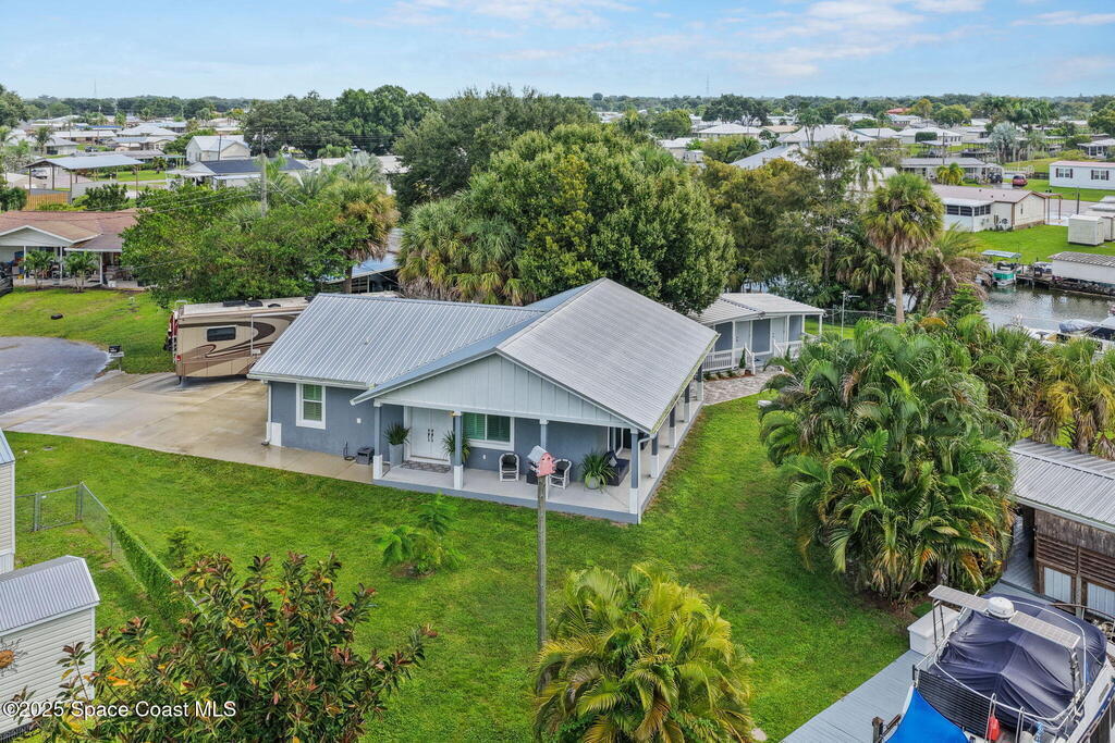 Waterfront Luxury Meets Coastal Lifestyle! Newer 2021 Custom-Built Home. Deep Freshwater Canal - On An Oversized Corner Lot. Easy access to Lake Okeechobee and direct access to both the Atlantic and Gulf Coast. Cruise to the Bahamas or Florida Keys in just 1-2 days by boat. No HOA. Bring your boats and RVs! Store 3-4 large boats. Property features: 3 Docks, a Boat Lift, Tiki Bar, and 2 RV Hookups with power and water. A detached workshop with full bath is ready to convert into a mother-in-law suite. Built to the highest hurricane standards with Cement Block (1/2 filled), Durable Metal Roof, and Impact Doors & Windows. Foam attic insulation enhances efficiency. On City Water & City Sewer. Underground gutters and a wraparound porch. Inside, enjoy 9' vaulted ceilings, solid doors, plantation shutters, and life-proof flooring. All kitchen appliances, stackable washer/dryer, and mounted TVs included.