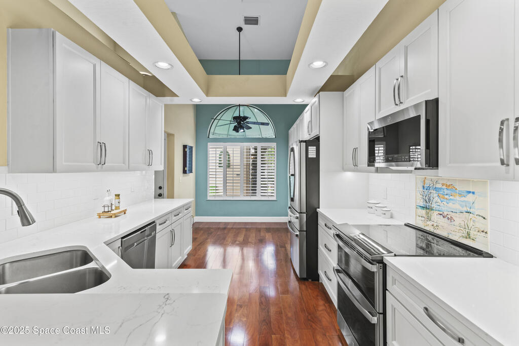 Step into this beautifully 2-story townhouse in sought-after Parkside Place and discover a home designed for both comfort and style. The light-filled, open floor plan welcomes you with vaulted ceilings, rich wood floors, and a stunning family room framed by French doors leading to the enclosed sunroom--an ideal spot for morning coffee or a quiet evening read. The newly remodeled eat-in kitchen shines with quartz countertops, stainless steel appliances, and abundant cabinetry, seamlessly connecting to the dining area for easy entertaining. The spacious first-floor primary suite offers a peaceful retreat with an adjoining sitting area or office and generous closet space. Upstairs, two roomy bedrooms share a convenient Jack & Jill bath. Enjoy community amenities including a sparkling pool, spa, clubhouse, tennis and pickleball courts--all just minutes from Gleason Park, beaches, dining, shopping, and the Port.