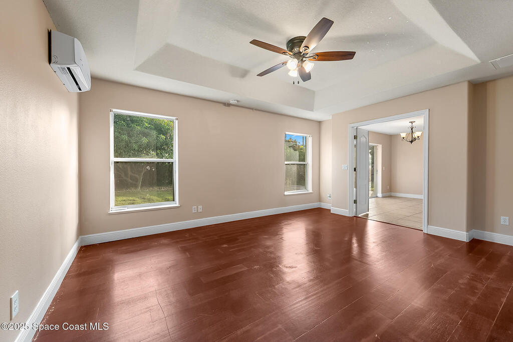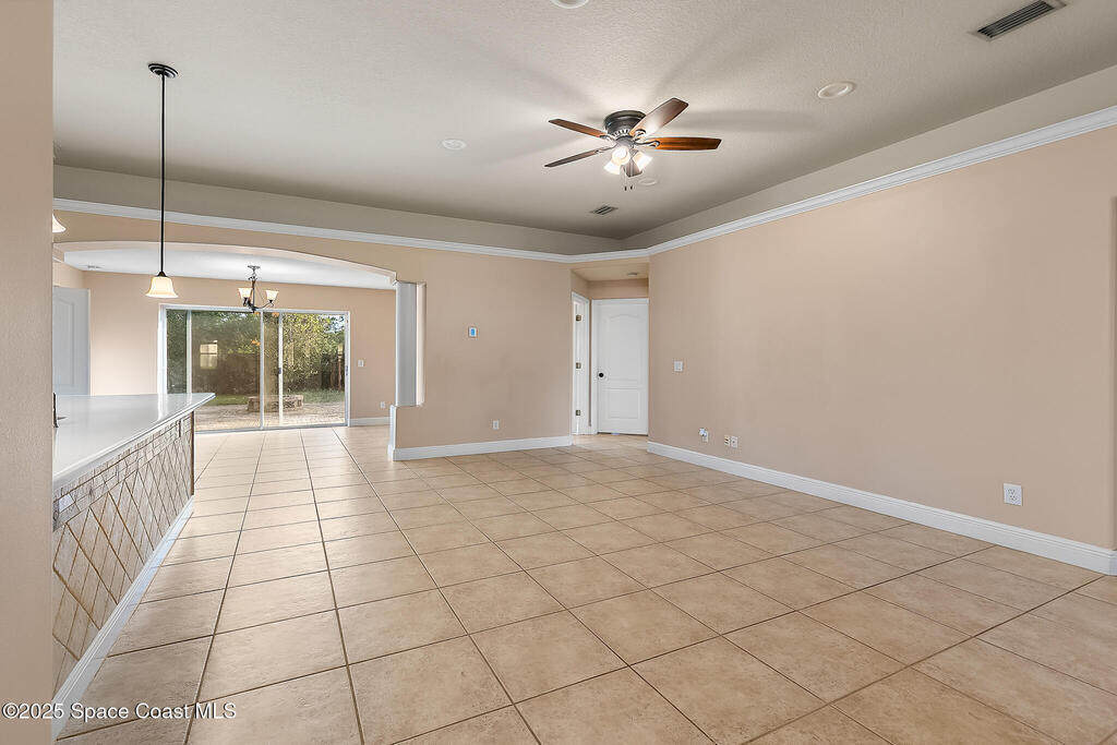 Welcome to this beautifully maintained 4 bedroom, 2 bathroom home offering serene views and a thoughtfully designed open floor plan. This home includes a formal living room and dining room--perfect for entertaining--as well as a huge eat-in kitchen with ample cabinet and counter space, ideal for any home chef. The primary suite is a true retreat, featuring double door entry, tray ceilings, a large walk-in closet, and an ensuite bath with a Jacuzzi tub, linen closet, and separate shower. The laundry room is conveniently located off the kitchen and includes a utility area and additional storage. Outdoor highlights: Multiple mature fruit trees: Glenn Mangoes, Everbearing Mulberry, Suriname Cherry, Jaboticaba, Blue Java Banana Trees, Red & White Dragon Fruit. Irrigation is on well water to keep the yard lush! This unique property combines comfort, efficiency, and natural beauty -- a must-see for those seeking space and sustainability!