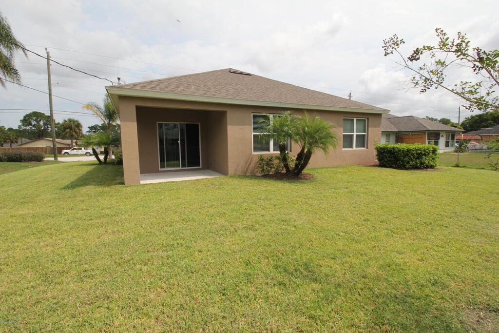 Check out great home located in South East Palm Bay close to Malabar Rd and I-95. This home features four bedrooms, two bathrooms, living room/ dining room combo, kitchen with island, walk-in pantry, and stainless steel appliances. The driveway has been extended to fit extra cars for parking. There is a covered patio overlooking a spacious back yard. Must have renters insurance. Make your appointment today!