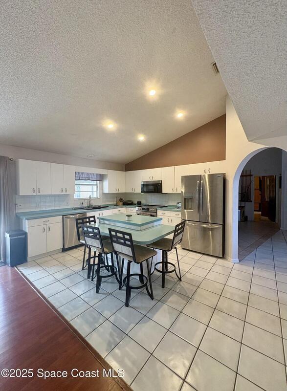 Buyer Opportunity to own a Private Pool & Hot Tub with good bones and open to updates! Priced for potential New Roof before closing with an acceptable offer. This home offers a fully fenced back yard, screened lanai, updated exterior paint, a split floor plan of 3 bedrooms, 2 full baths & 2 Car Functioning Garage that is displayed as a media room w/ a mini split to keep cool. Featuring Vaulted Ceilings, tile & wood laminate floors, dining & sitting rooms upfront and then continues with an open kitchen/family room layout w/ a cozy wood burning Fireplace. Updated Primary En Suite Bathroom w/ large shower & Frigidaire SS Appliances add modern touches to this traditional home. Pool Pump & AC have been Updated & newer HWH 2024!