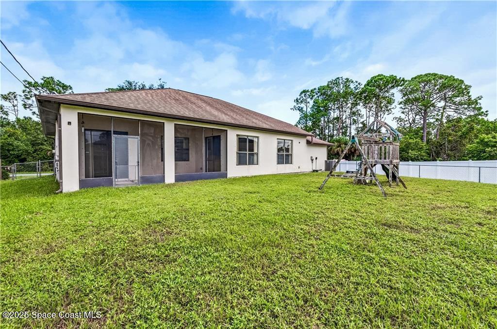 Charming home with amazing large yard! Discover this beautifully maintained 3-bed, 2-bath gem with volume ceilings and an impressive double-door entryway. The kitchen is a dream, featuring a large island and a convenient pantry. Relax in the spacious primary suite with a walk-in closet, dual vanity sinks, and a separate garden tub. Step outside to enjoy the Florida weather on your screened-in porch overlooking the huge, fenced-in backyard--perfect for pets and entertaining. Complete with a 2-car garage, this home offers privacy, space, and comfort. Don't miss this opportunity!