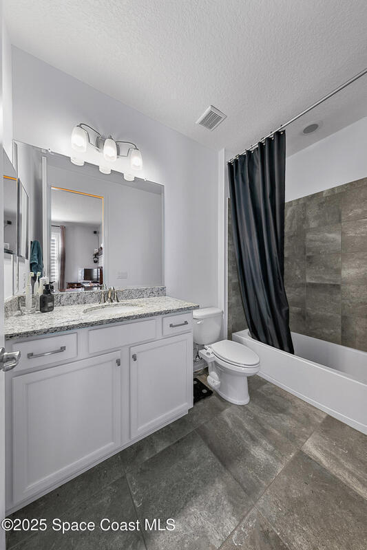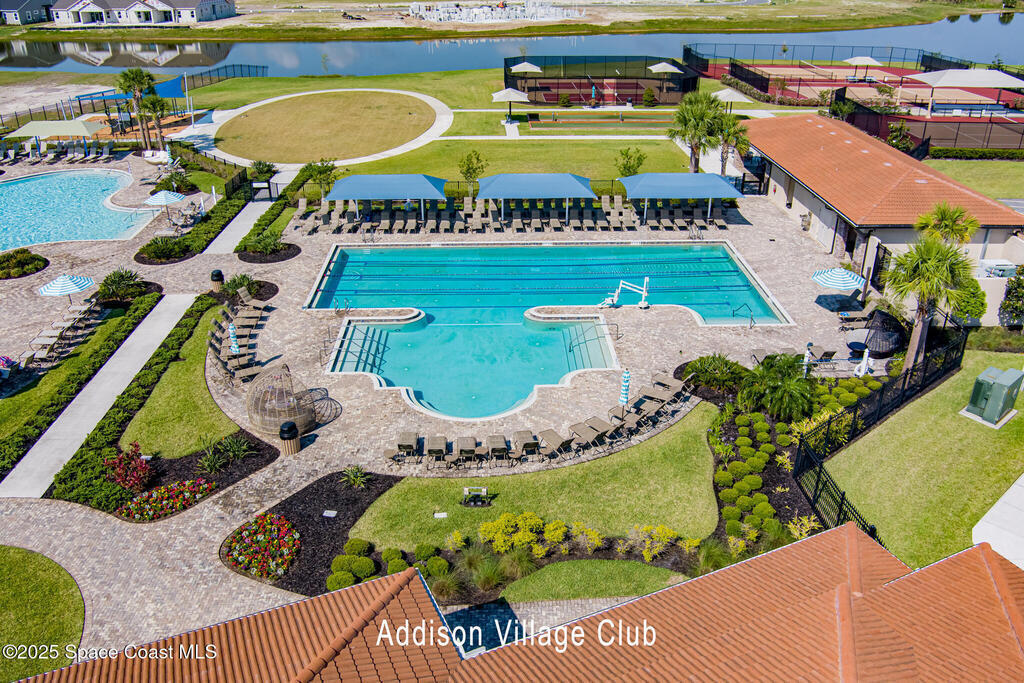This lakefront pool home is in the heart of Viera, and once the model for the neighborhood. Located behind the gates of the Stonecrest subdivision which is less than 1 mile from I-95 and in the heart of and in Brevard's premier school district. This gorgeous 5 bedroom, 4 bathroom lake front home is LOADED with extras. This spacious gourmet kitchen has a gas stove. IMPACT WINDOWS throughout home. The garage is air conditioned with a separate workspace/office (the living sq ft doesn't include the garage). The outdoor living has a large porch & screened pool with tranquil waterfront views. The floor plan is well versed with office/den in the front of home plus a HUGE bonus room bath and the 5th bedroom on the second level. This golf cart friendly subdivision has a community pool, exquisite clubhouse, multiple pickleball and tennis courts and even a shaded playground with many walking paths to venture along. Home is turnkey, and ready for a new family for immediate occupancy.