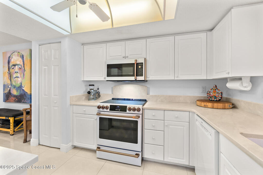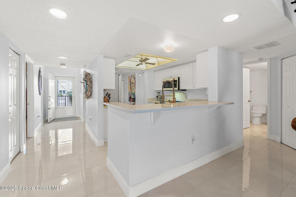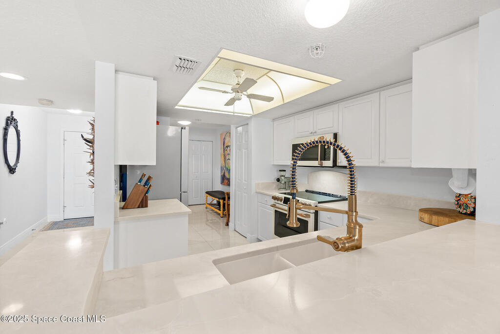 This oceanfront 2-bed, 2-bath condo in the gated RESORT-STYLE Shorewood community offers more than just a place to live--it epitomizes the Florida lifestyle! Enjoy stunning ocean views and indoor-outdoor living with large sliders opening to a spacious south-facing balcony and covered patio with a side view of the ocean, perfect for relaxing or entertaining while soaking up the ocean breeze. The split layout provides privacy between bedrooms. A wide open living area filled with tons of natural light flows seamlessly into the kitchen, which includes a bonus flex space, an expansive breakfast bar and BRAND NEW 2025 APPLIANCES. New oversized tile flooring throughout provides a modern touch. The spacious primary suite includes a new tub and his & hers vanities. A private underground garage with storage adds convenience, with extra parking outside.