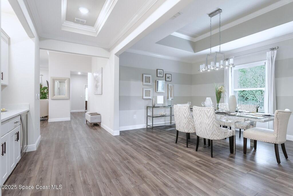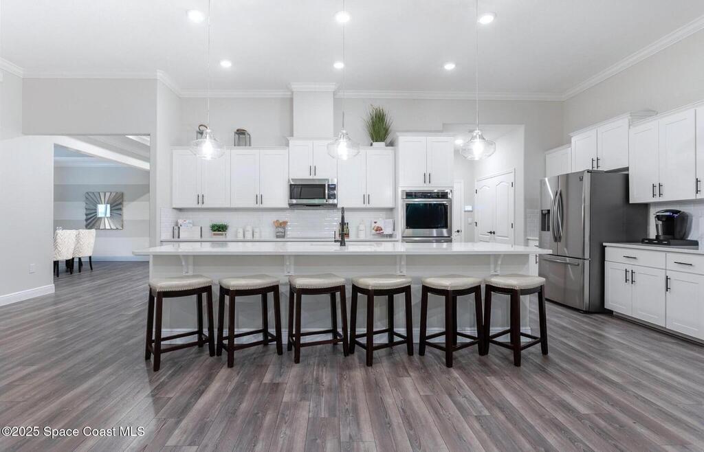 MOTIVATED SELLER! Ever wish you could live in the model home? Now is your chance! Never lived in with all the upgrades & ready for you to make it home!This contemporary & stunning Livorno model is a must-see home featuring timeless white cabinets & quartz countertops throughout an entertainers dream with huge dining room , wet bar & gourmet kitchen all seamlessly connected. The Impressive 11-foot ceilings in this home exudes a spacious & open ambiance with wooded views looking out from great room & lanai.Among the many features , this property includes a massive primary bedroom that is a MUST SEE in person, two flex spaces a front den or 5th bedroom & a larger flex room perfect for a game room, additional entertaining area or formal dining room as shown in photos. The exterior features a stone veneer, inviting front porch & 3 car garage. The interior & exterior was updated with new paint, new flooring with new wood LVP & new upgraded carpet in 2022