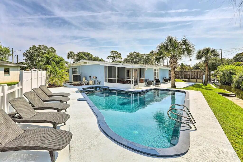 Beautiful canal home in desirable Surfside Estates .This home has open concept living with a beautiful kitchen with granite counters and back splash and large kitchen island. Nice dock to tie small boat up and the dock has a lower area to put paddle boards or kayaks in and out easily. There is a nice size pool and a large outdoor patio in the rear. Plenty of room to hang out and enjoy the Florida weather.Conveniently located near Blue Origin, NASA, and other space companies. Additionally, enjoy easy access to Orlando and its famed attractions. Don't miss the chance to make this canal retreat your home.