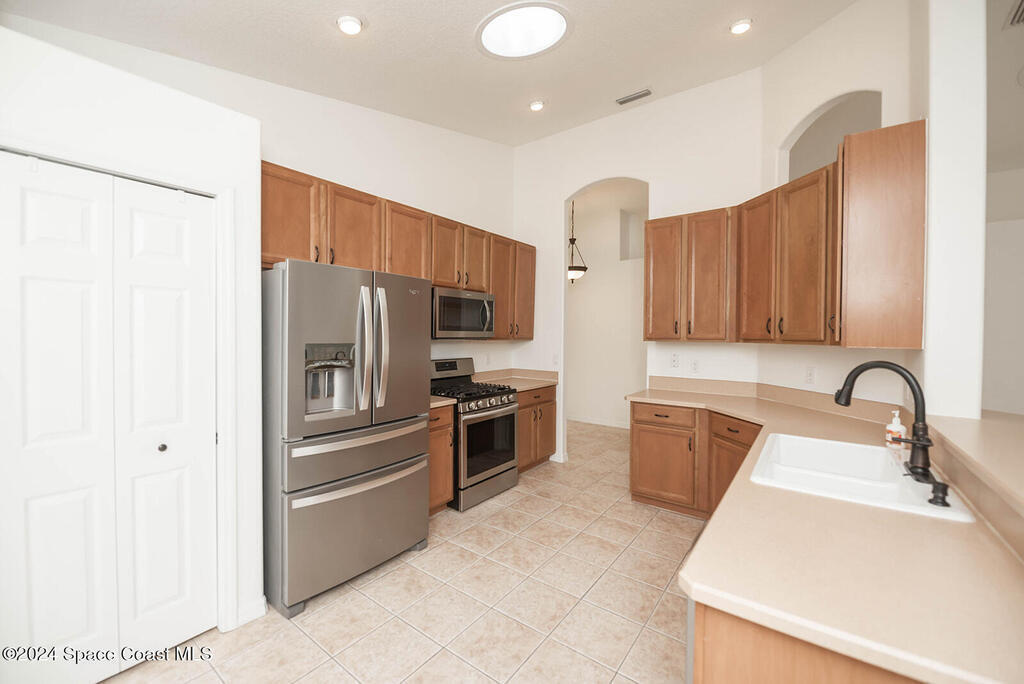 Nestled in a prime location of Melbourne, Florida, this charming three-bedroom, two-bathroom home offers an ideal blend of comfort and convenience within a gated community. This spacious, open floor plan greets you with suttle natural light, seamlessly connecting the living room, dining area, and kitchen with breakfast nook. The kitchen features stainless steel appliances, solid surface counters, and plenty of space for the chef in you! As a bonus this home has gas connected to the range, water heater, dryer, and furnace! The primary suite provides a private retreat with a spacious bathroom, featuring a soaking tub and double sinks with large walk-in closet. The additional bedrooms offer flexible space for family or guests. Residents can enjoy the community pool and playground located within the community. Viera's shopping, dining, and top-rated schools are located just minutes away. This home is a straight shot to the beach and Patrick Air Force Base. Lawn care is included.