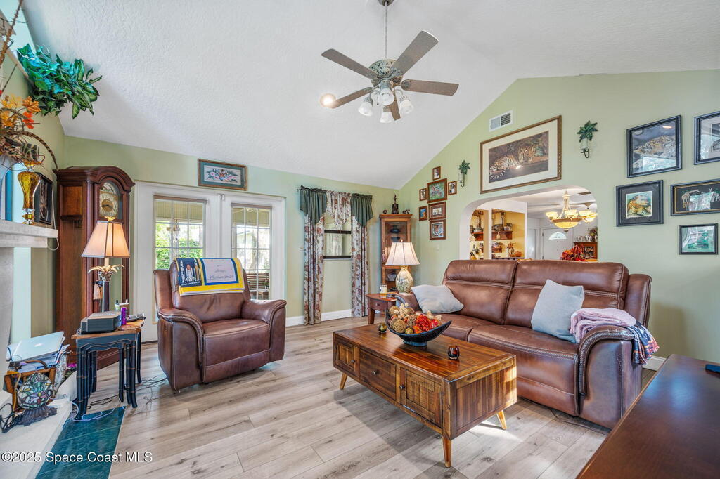 Come see this delightful 3 bedroom 2 bath with a 2 car garage, fenced yard, block home in Port St. John. You'll enjoy the family room with vaulted ceilings, fireplace, large windows and French doors that lead out onto the screened porch. Back yard fence belongs to the seller and side fence belongs to neighbors. There is a large workshop with electricity. A smaller utility shed for lawn tools. Living room, dining room and family room have lovely wood floors and bedrooms are carpeted. Kitchen was updated & all appliances are being conveyed, including washer and dryer. Home is convenient to shopping, schools, restaurants, and main arteries of travel. Disney, Universal, Sea World just 45 minutes away!