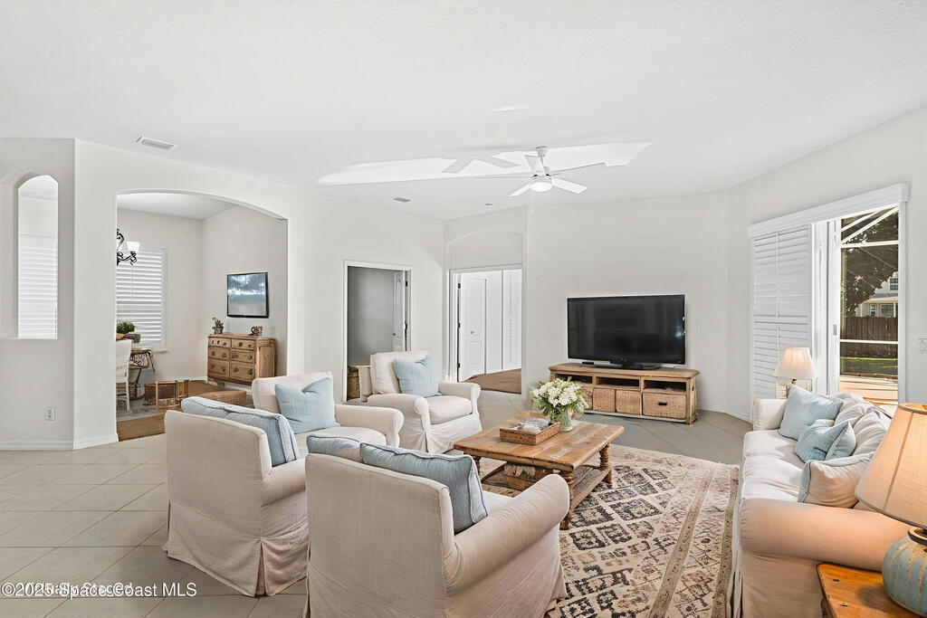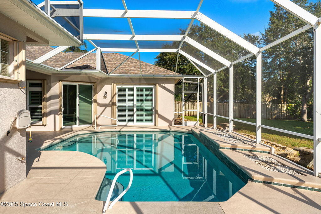 72 HOUR KICK OUT IN PLACE - Welcome to River Grove, one of South Merritt Island's premier executive communities featuring a private community dock for fishing, kayaking, or sunset views on the Indian River. This 3-bedroom, 3-bath home offers an inviting pool view the moment you step inside, creating the perfect Florida lifestyle. The open layout is bright and spacious, complemented by a private in-law suite ideal for multi-generational living or guests. Recent upgrades include a brand-new 2025 A/C unit, new microwave, and new dishwasher. Enjoy outdoor living at its best with a screened pool area and lush tropical surroundings. Pride of ownership shines throughout this beautifully maintained home in one of South Merritt Island's most sought-after neighborhoods.