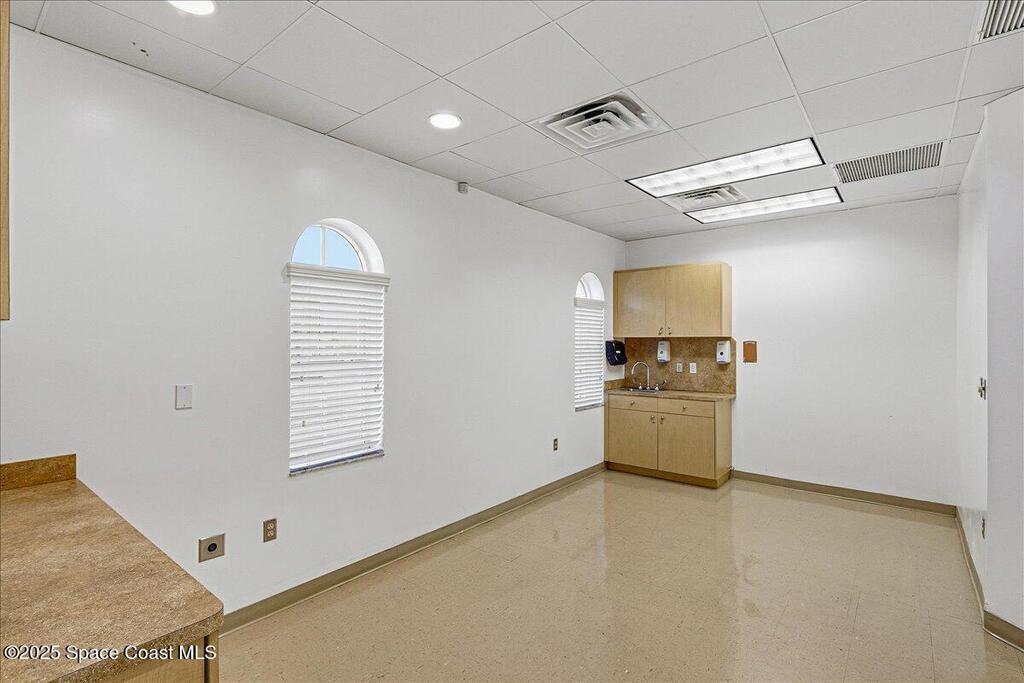 Beautifully Finished and Well Maintained 3, 025 SF Medical Office with Waiting Room (shared), Reception, Nurses' Station, Five Exam Rooms, Large Procedure Room, X-Ray, Consult, Break Room with Exterior Entry Door, Office Manager and Two Doctors' Offices. Spyglass Plaza has Mediterranean style architecture buildings of CBS construction with IMPACT windows and barrel tile roofs. It is designed with plenty of parking for medical use and has two access drives at the east and west sides. Monument signage for this unit is available on the west sign. Spyglass Hill Road's corridor is almost exclusively medical and encompasses Viera's Spyglass Medical District. It is less than 2 miles from Viera Hospital, just minutes to I-95 @ Wickham Rd. and about 4 miles to US-1 at Viera Blvd. It is home to many physicians, medical associations, and professional offices, and adjacent to large residential areas.