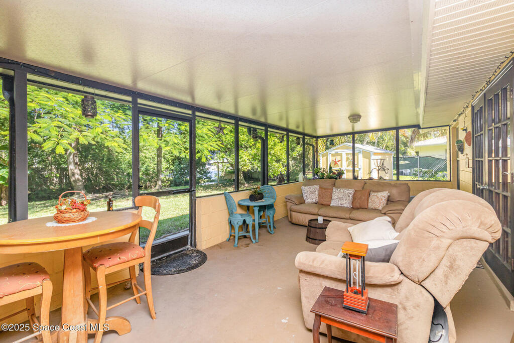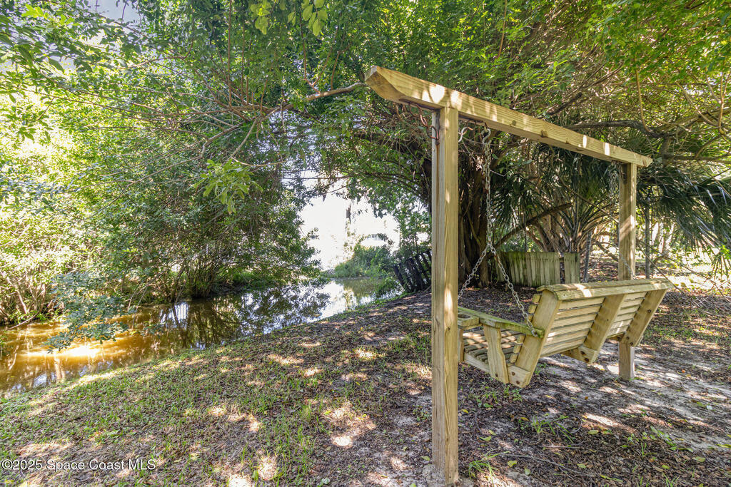 Welcome to this well-maintained 3-bedroom, 2-bathroom concrete block home located in the heart of Merritt Island. This inviting property offers a comfortable layout with a large screen patio, spacious living areas, and a functional kitchen. Step outside to a beautifully landscaped backyard featuring a peaceful pond view and a cozy swing -- perfect for relaxing evenings or morning coffee. Solid construction, serene setting, and a prime location make this home a must-see!