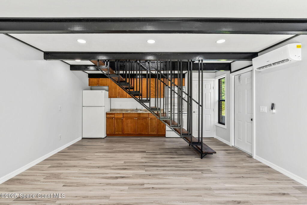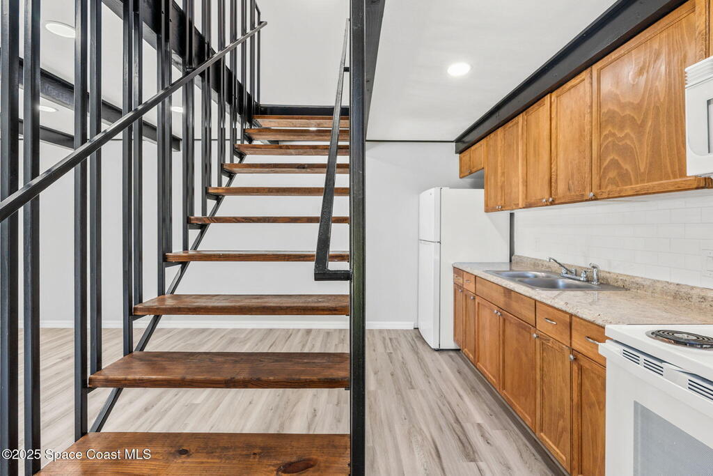 Discover the fully renovated 1-bedroom, 1-bathroom condo in the back of the quiet Bluffs community of Palm Bay off of US1.This move-in ready home was renovated and cabinets and baths replaced 3 years ago as well as luxury vinyl plank flooring, LED lighting, and ceiling fan upstairs. Enjoy the open-concept living space and an energy-efficient tankless water heater. The two-story loft-style layout offers privacy with the spacious bedroom, bathroom & enclosed laundry room located on the second floor. Low association dues make this an affordable investment opportunity! A detached one-car garage provides additional storage and convenience.Located in a prime area, just minutes from downtown Melbourne and 15 minutes to the beach, this condo offers both comfort and affordability. Don't miss the opportunity to make this yours - schedule your showing today!