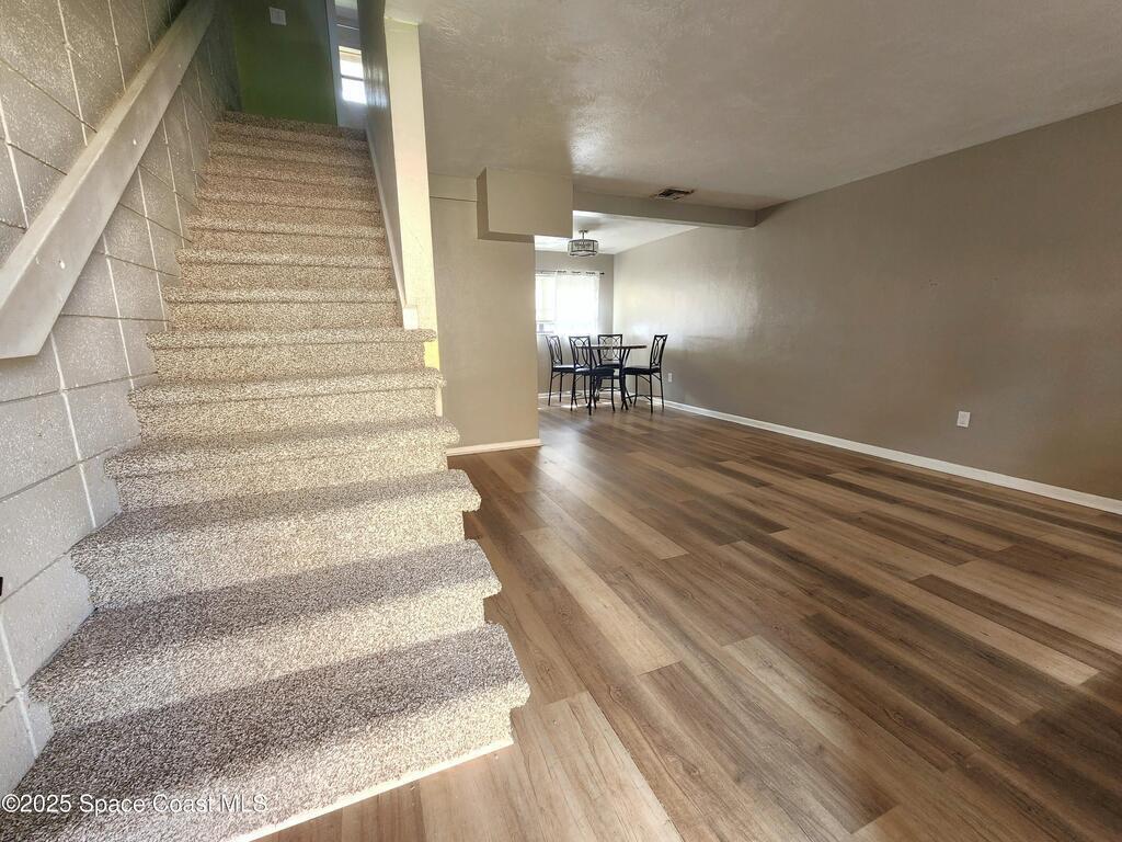 Beautifully Renovated End Unit Townhome Just Steps from the River! Enjoy Comfort and Convenience in this updated property featuring a Renovated Kitchen and Bath, Washer and Dryer Hookup, and Stylish New Flooring. Concrete Block Construction. The Main Level offers Gorgeous Wood-look Floors, while the upstairs provides Carpeted Bedrooms. With Low HOA fees of just $150/month and No Pet Restrictions, Rental minimum 30 days, this home is perfect for Owners or Investors alike. Conveniently located near Major Employers, Military Base, River, Ocean and just Minutes from Downtown Melbourne. HOA includes Exterior Maintenance and Roof Replacement for Worry-Free Living!