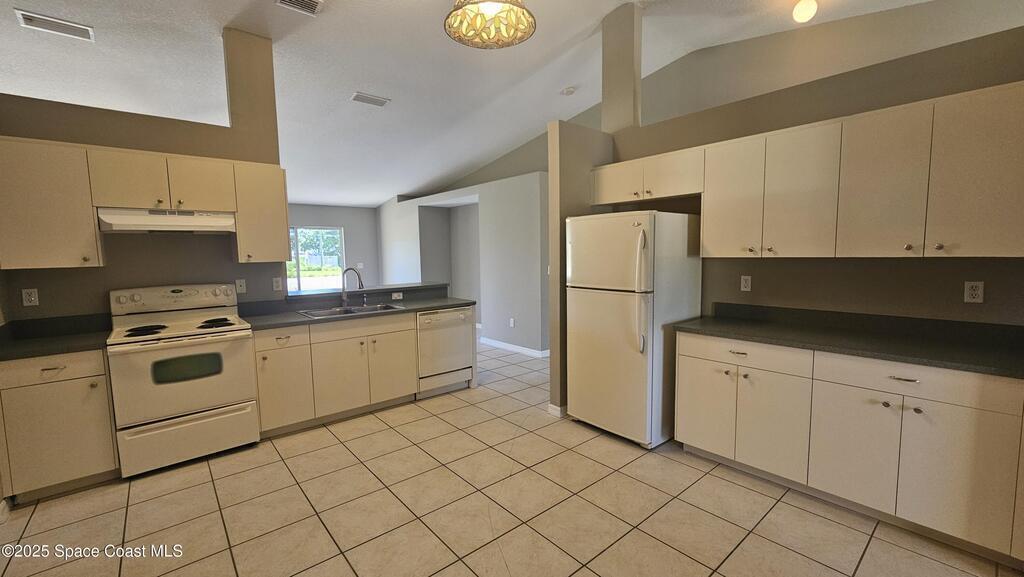Spacious 3-bedroom, 2-bath home featuring a large, open layout with vaulted ceilings and tile floors throughout the main living areas. Enjoy formal living and dining rooms plus a generous eat-in kitchen perfect for family gatherings. The oversized master suite offers his and her closets, and a luxurious bath with a garden tub and walk-in shower. Additional highlights include carpeted bedrooms, an indoor laundry room, city water, and a two-car garage for added convenience.