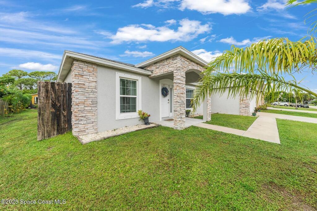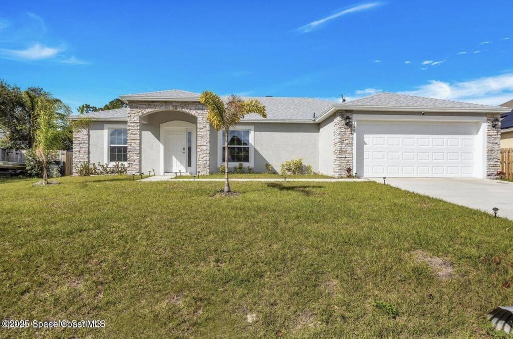This extremely functional Capri floor plan by Avtec Homes is basically NEW. City water and sewer which is a HUGE BONUS in Palm Bay. Barely lived in and built at the end of 2021, this 3 bedroom PLUS an office is the perfect layout. This move in ready home is spacious, open, and has a big enough yard to accommodate a pool. Less than 10 minutes to Hammock Landing where you'll find tons of shopping and dining. No carpet.