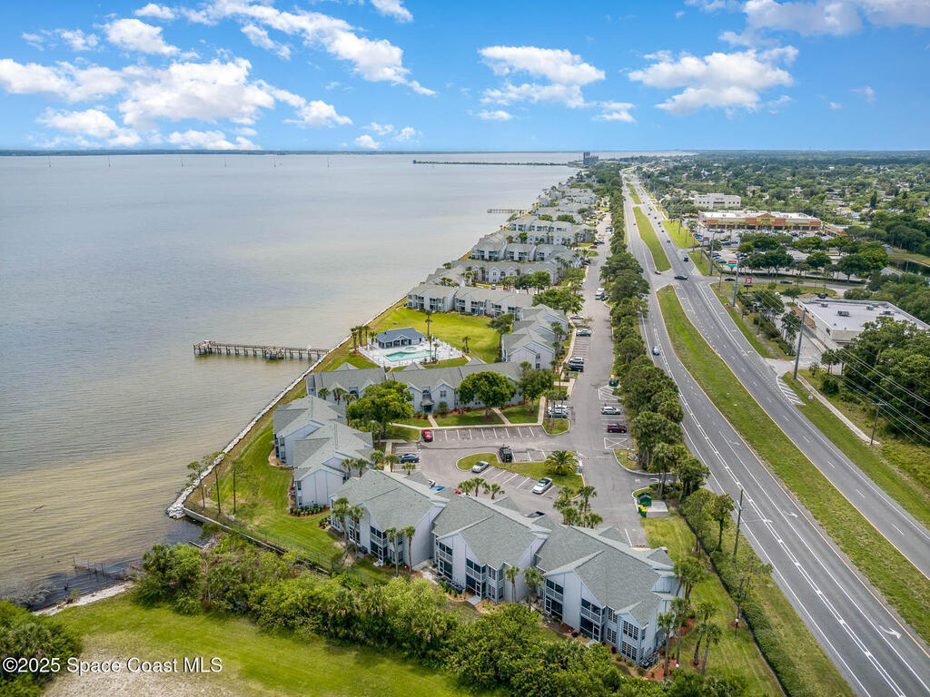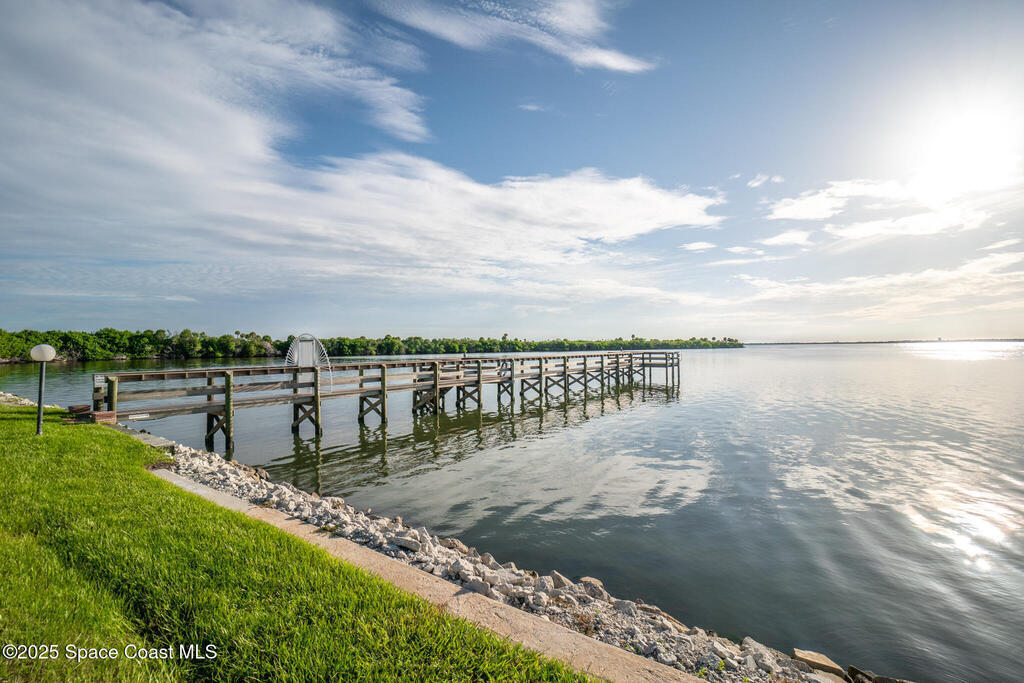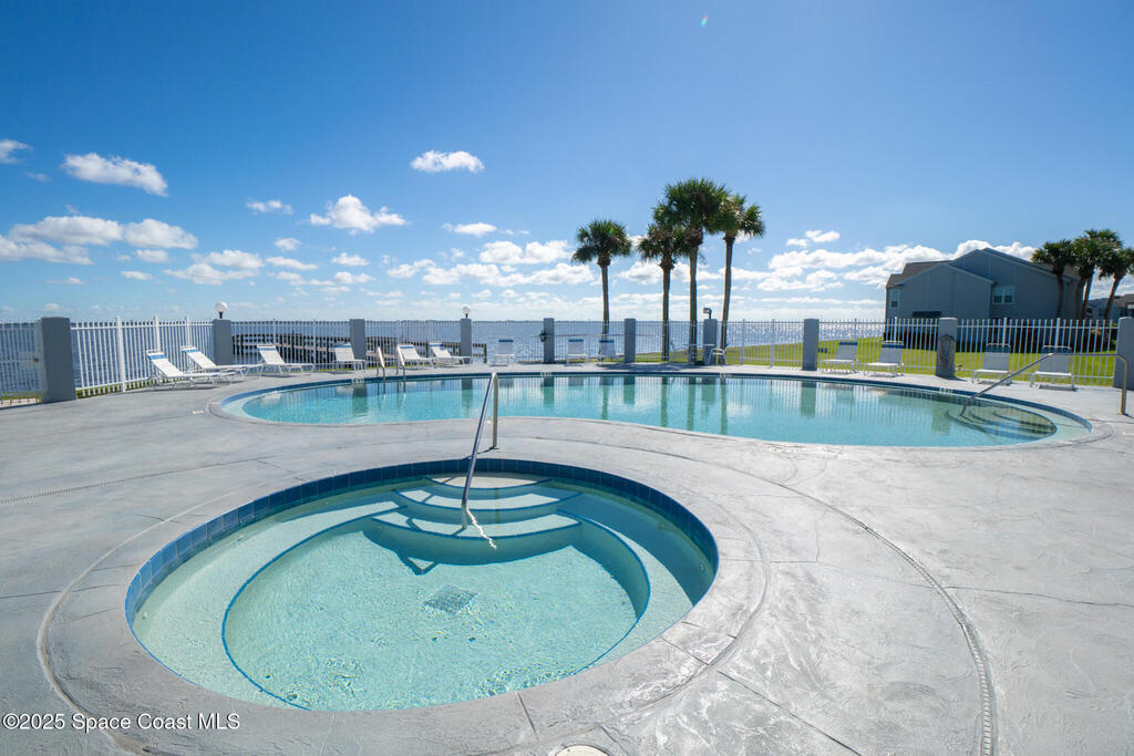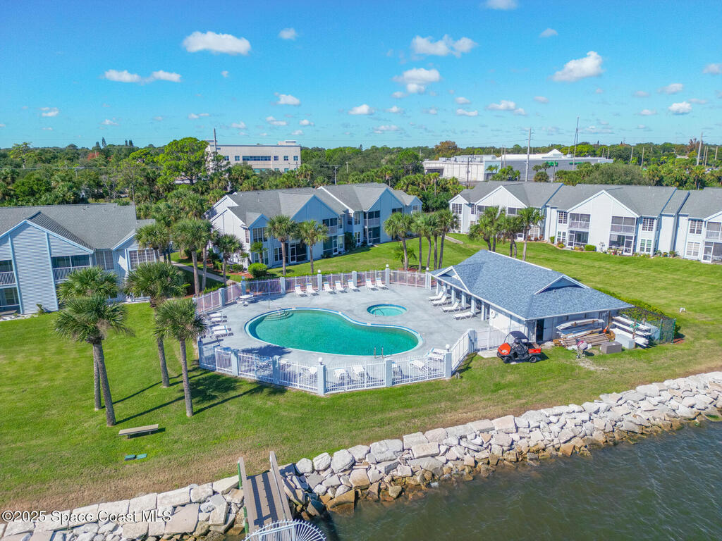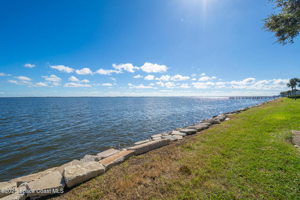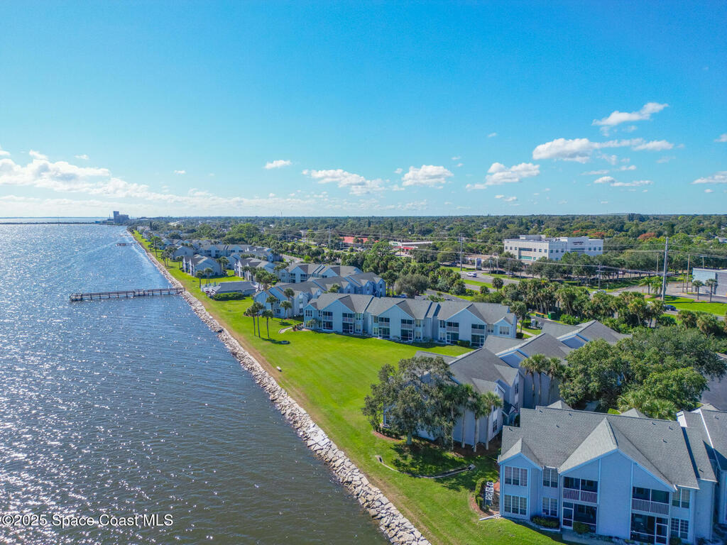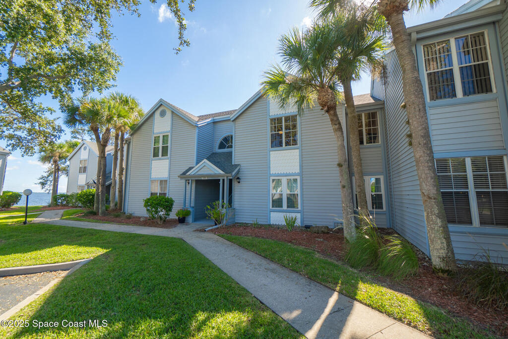 Experience breathtaking Indian River views from this beautifully maintained 2-bed, 2-bath condo in the highly desirable Sunrise Landing community. Soak in the sunshine and watch rocket launches right from your south-facing private screened balcony. Inside, this light-filled unit features an updated kitchen complete with wood-like laminate flooring, newer stainless appliances, bright white cabinetry and sleek granite countertops. The modern open layout flows seamlessly into the dining and living areas, all with spectacular river views. The spacious primary suite includes an ensuite bath with a dual-sink vanity and updated fixtures. Step outside and enjoy the well-manicured grounds and resort-style amenities including a private dock, 2 pools, 2 hot tubs, 2 saunas, 2 fishing piers, 2 clubhouses, 2 spas, tennis, pickleball & shuffleboard courts! Enjoy active community events and peaceful waterfront living all in one! Pet-friendly with low HOA fees. Assigned parking is right at your door!