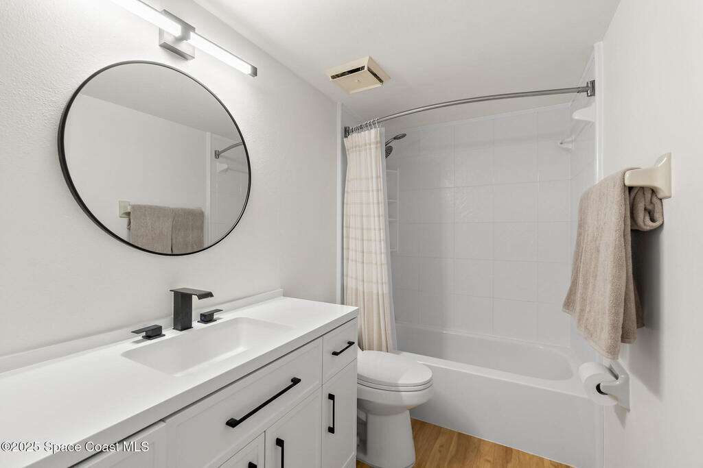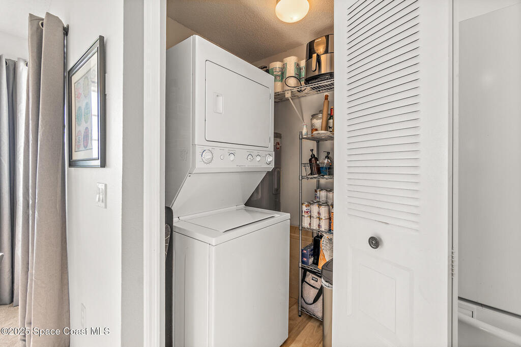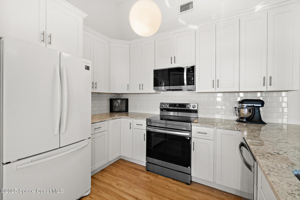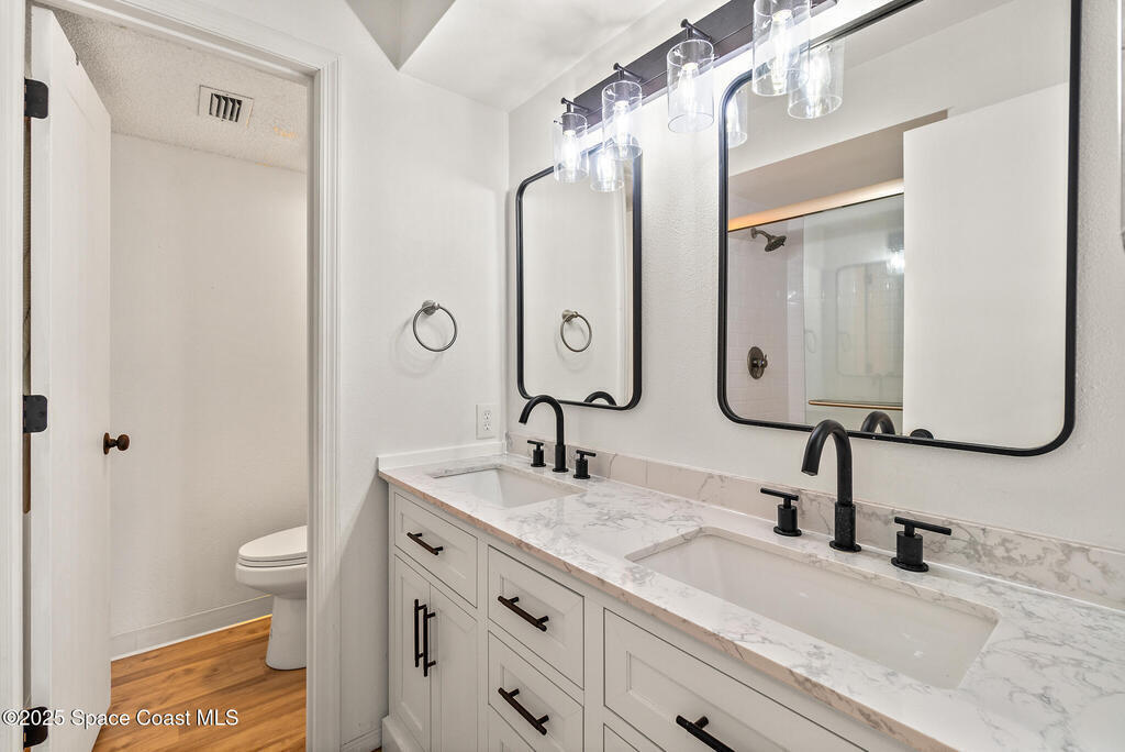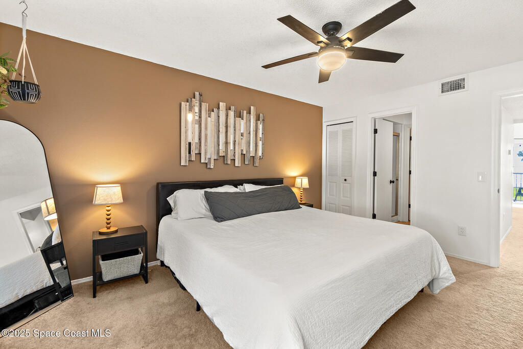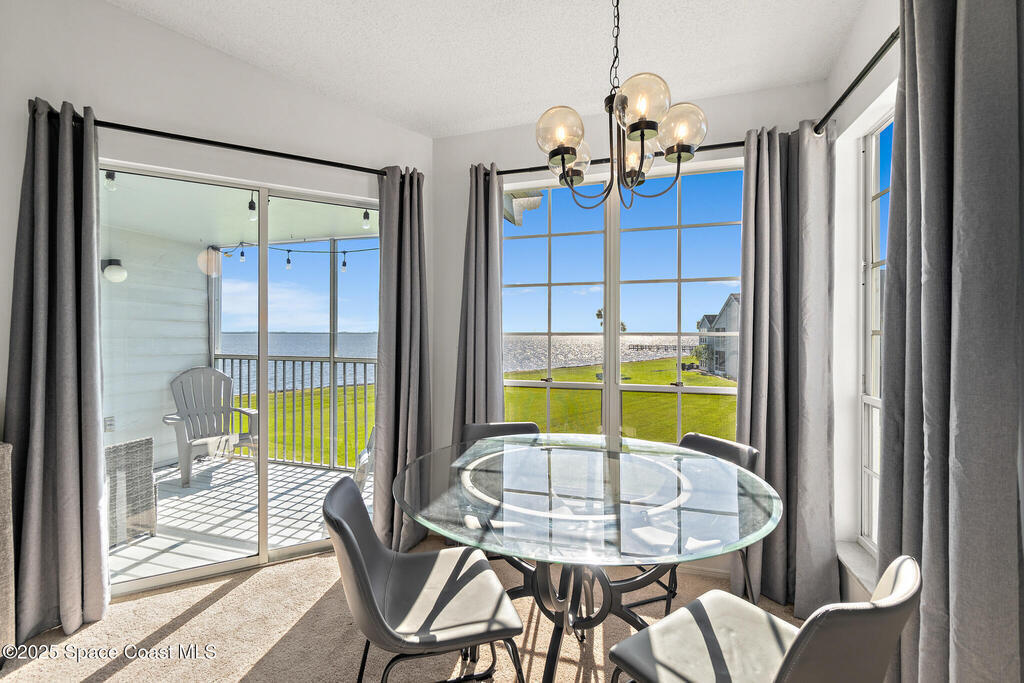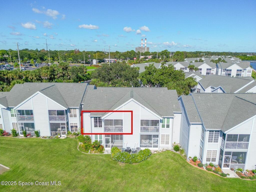Experience breathtaking Indian River views from this beautifully maintained 2-bed, 2-bath condo in the highly desirable Sunrise Landing community. Soak in the sunshine and watch rocket launches right from your south-facing private screened balcony. Inside, this light-filled unit features an updated kitchen complete with wood-like laminate flooring, newer stainless appliances, bright white cabinetry and sleek granite countertops. The modern open layout flows seamlessly into the dining and living areas, all with spectacular river views. The spacious primary suite includes an ensuite bath with a dual-sink vanity and updated fixtures. Step outside and enjoy the well-manicured grounds and resort-style amenities including a private dock, 2 pools, 2 hot tubs, 2 saunas, 2 fishing piers, 2 clubhouses, 2 spas, tennis, pickleball & shuffleboard courts! Enjoy active community events and peaceful waterfront living all in one! Pet-friendly with low HOA fees. Assigned parking is right at your door!