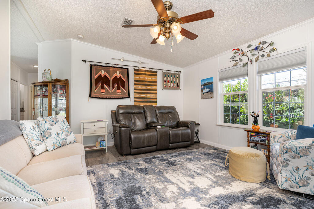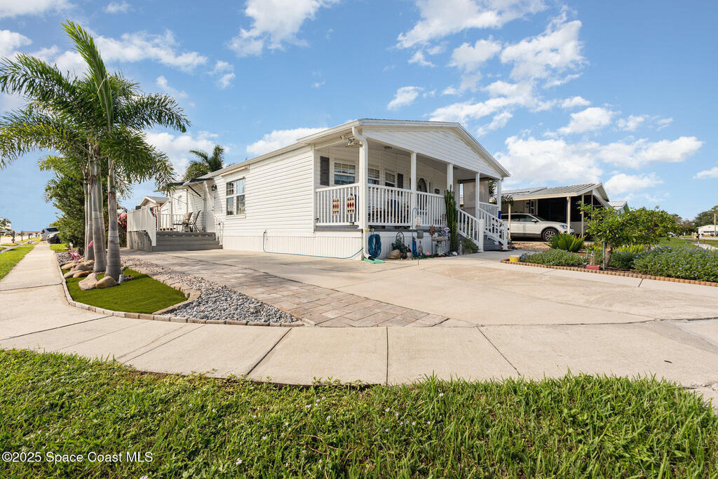 Completely updated by current owners and move-in ready 2-bed, 2-bath, 2005 manufactured home in the desirable Palm Bay Colony, a 55+ community where you own your land and enjoy no mandatory HOA. Every detail has been thoughtfully remodeled for easy, comfortable living, to include a brand new dishwasher 1/2026!! Relax on the front porch where you can watch rocket launches from Cape Canaveral, or unwind on the back patio swing surrounded by lush Florida landscaping. The home and lot are the perfect size for enjoyment and low maintenance. Friendly neighbors, a true sense of safety, and convenient access to shopping, dining, the river, and the ocean make this a wonderful place to make home.