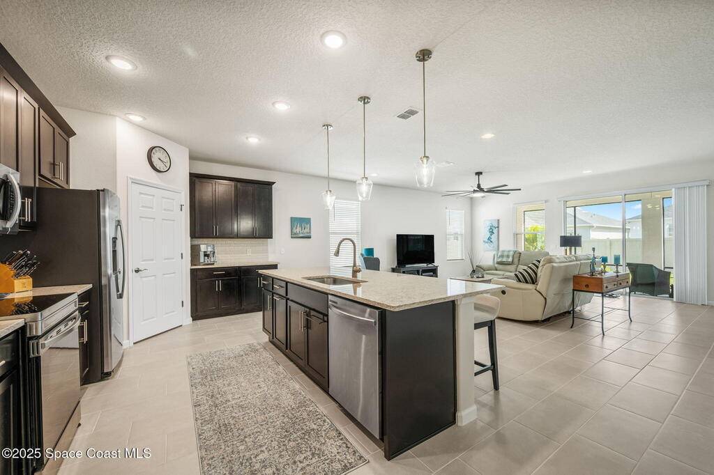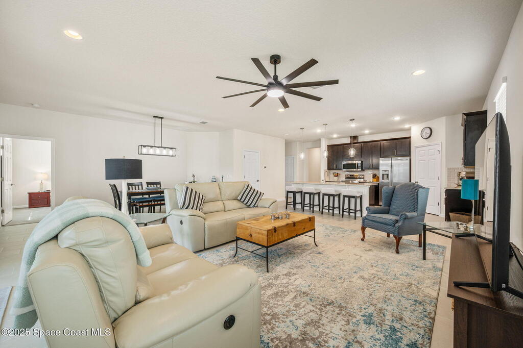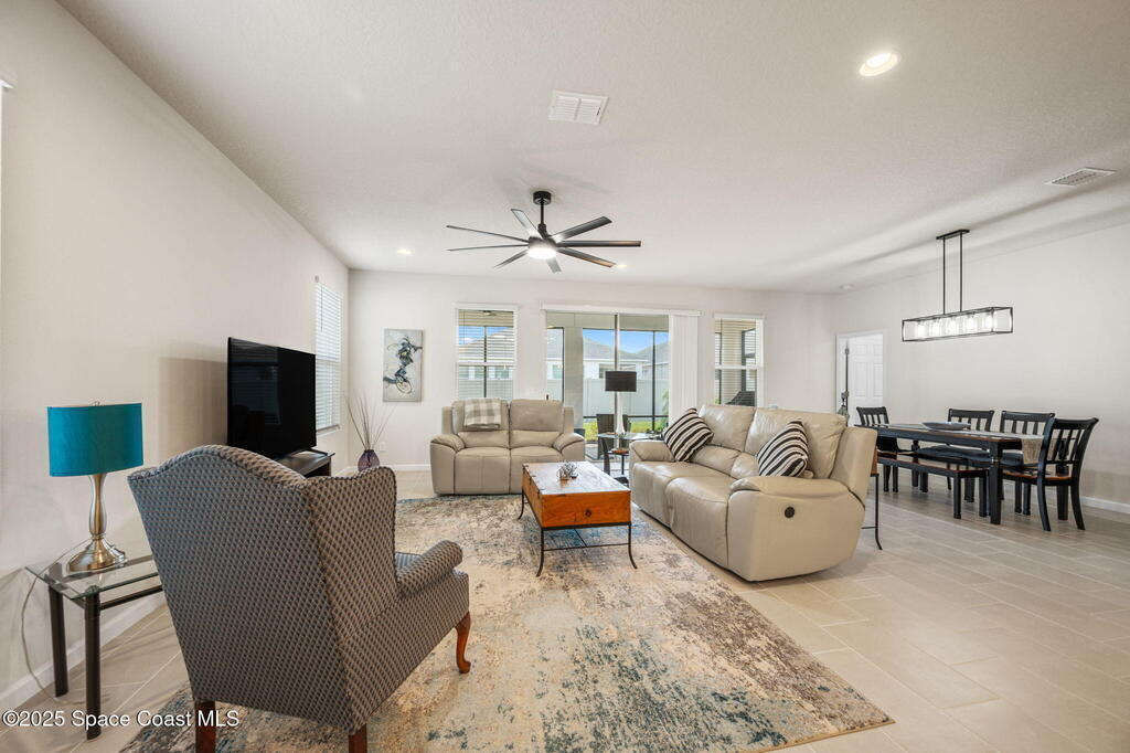 Move-in ready and better than new--plus seller incentives! This immaculate 4-bedroom, 2-bath LandSea-built home features an open-concept split floor plan ideal for today's lifestyle. Lightly used as a second home, it offers tile throughout the main living areas and plush carpet in the bedrooms. The bright kitchen shines with stainless steel appliances, quartz countertops, a large island, and double pantries for exceptional storage. Enjoy thoughtful upgrades including a screened back porch, custom landscaping, gutters, upgraded fans and lights, epoxy-coated garage floor, laundry room cabinetry, attic ladder access, and Smart Home Technology for added convenience. Sellers are offering $5, 000 toward buyer closing costs, & select furniture is available for purchase, making this home even more turnkey. Located in a desirable community with a sparkling pool, low HOA, and no CDD. Conveniently situated off St. John's Heritage Parkway near the new Publix. Skip the build time and move right in!