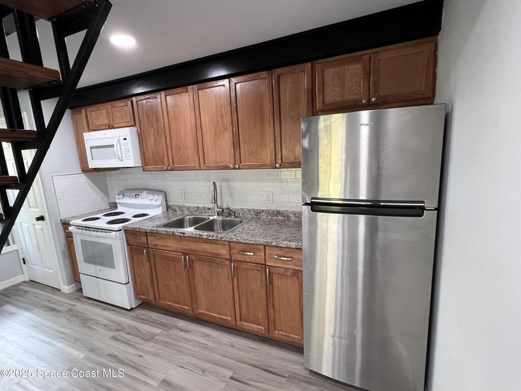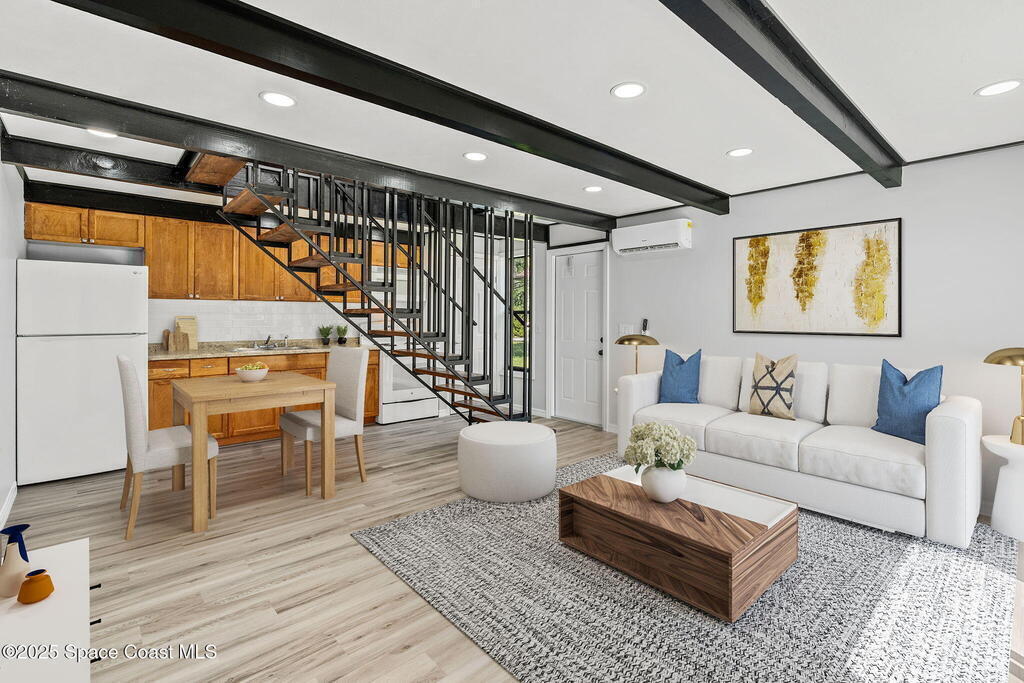 Discover the fully renovated 1-bedroom, 1-bathroom condo in the back of the quiet Bluffs community of Palm Bay off of US1. This move-in ready home was renovated and cabinets and baths replaced 3 years ago as well as luxury vinyl plank flooring, LED lighting, and ceiling fan upstairs. Enjoy the open-concept living space and an energy-efficient tankless water heater. The two-story loft-style layout offers privacy with the spacious bedroom, bathroom & enclosed laundry room located on the second floor. Low association dues make this an affordable home! A detached one-car garage provides additional storage and convenience. Updated units in this complex are renting for $1, 375+ per month, making this a great investment opportunity. Located in a prime area, just minutes from downtown Melbourne and 15 minutes to the beach, this condo offers both comfort and affordability.. Don't miss the opportunity to make this yours - schedule your showing today!