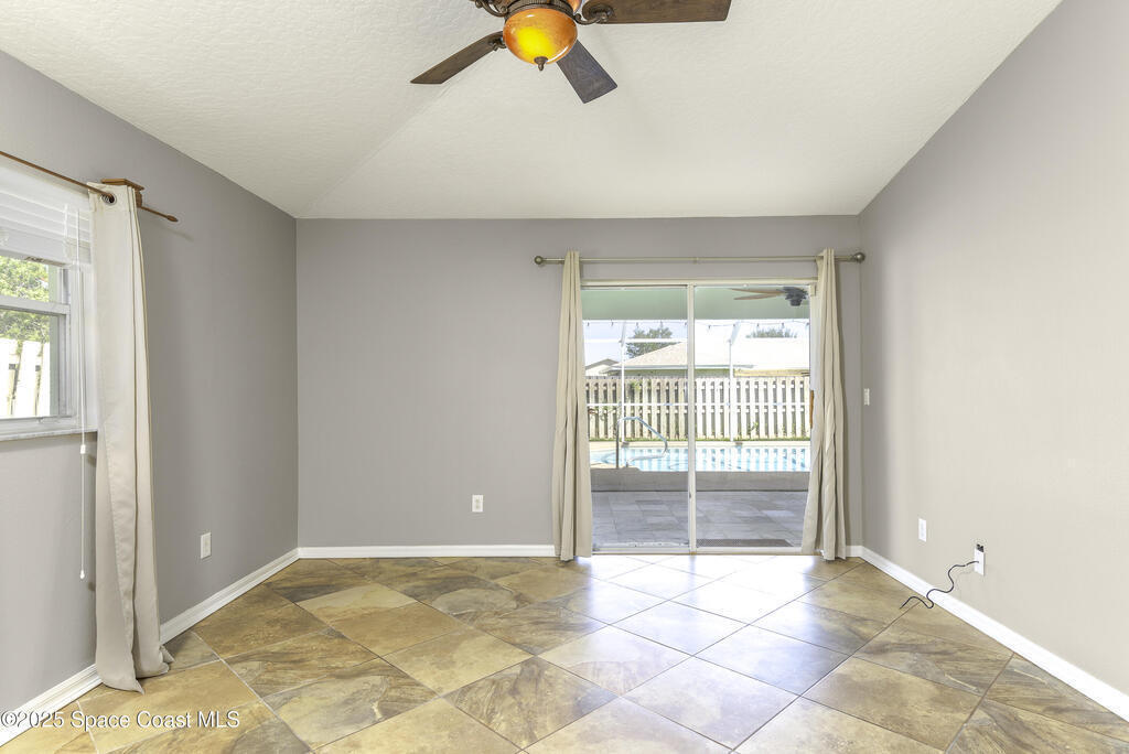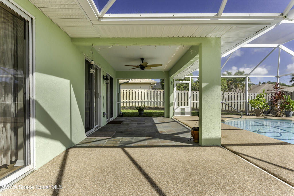 Discover comfort, convenience, and Florida living at its best in this 3 bed 2 bath pool home nestled in the gated community of Forest Creek. Enjoy your own private oasis featuring a screen enclosed electrically heated pool and a spacious covered trussed patio that is perfect for entertaining or relaxing year round. The EPDM pour in place rubber pool deck provides a safe, non slip, and cushioned surface ideal for play and peace of mind. Inside you'll find vaulted ceilings that enhance the home's open feel, large kitchen with ample cabinetry and counter space, with slate, wood, and tile flooring throughout. The fenced backyard adds privacy and space for pets or outdoor fun. Enjoy the best of Melbourne living with Southwest Park, Pieloch dog park, shopping, restaurants, places of worship, downtown Melbourne, and the beach all just minutes away. Bring your personal touch and make this well loved home your own, offering a great combination of location, comfort, and potential.