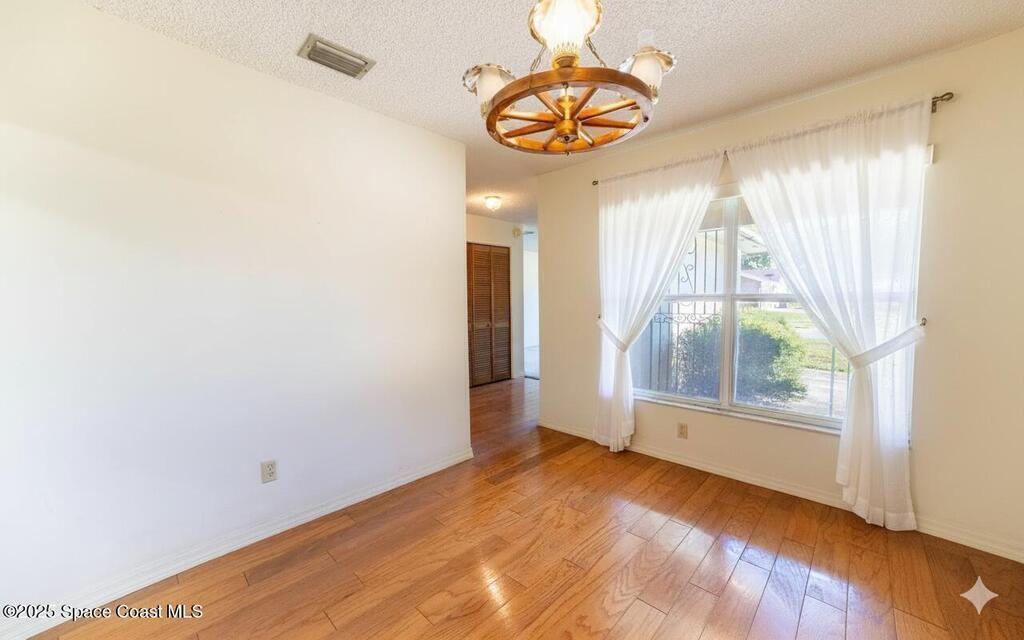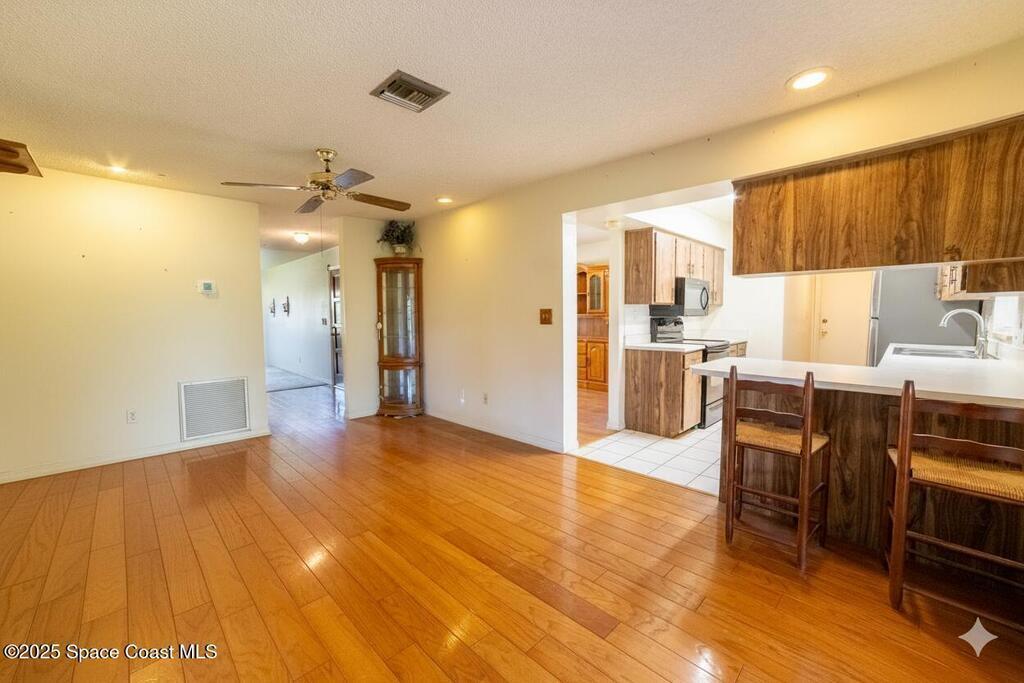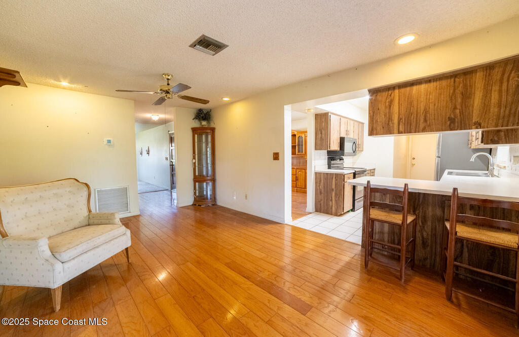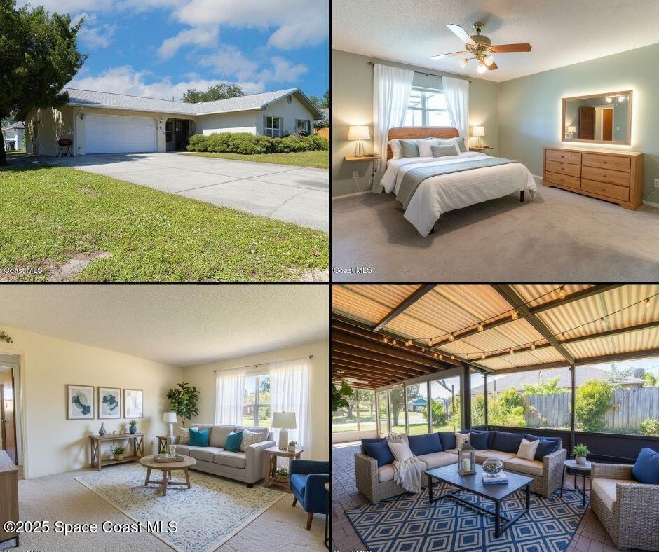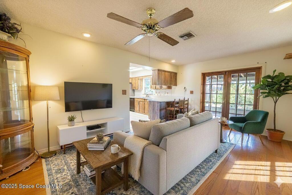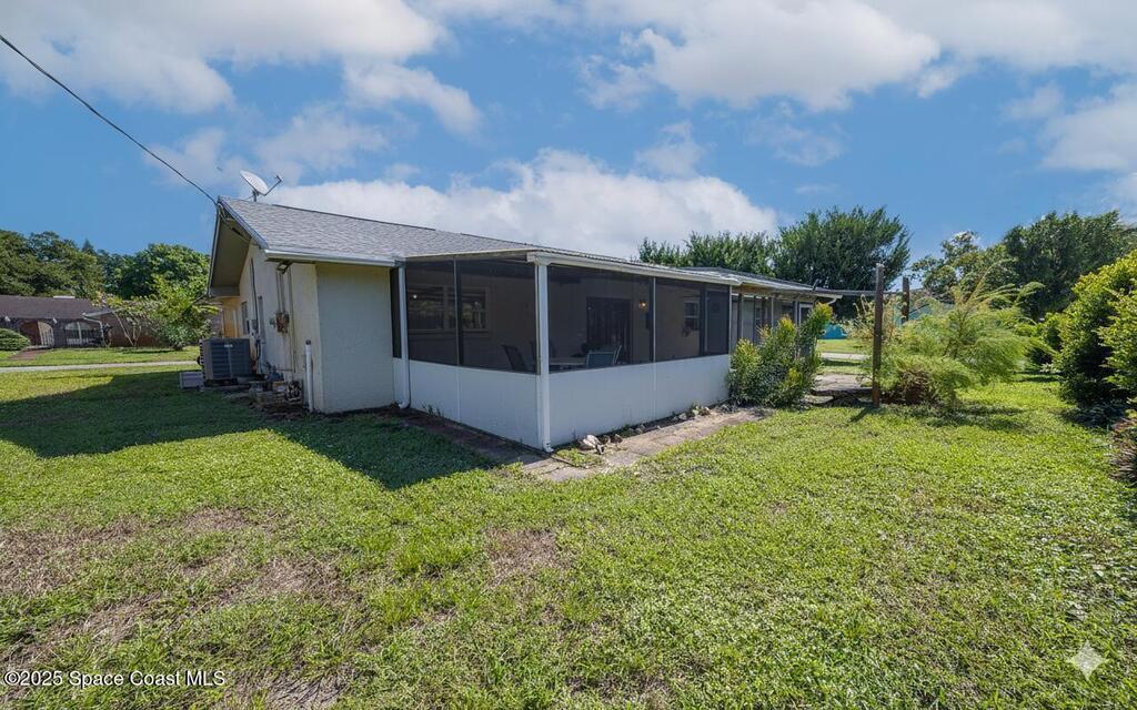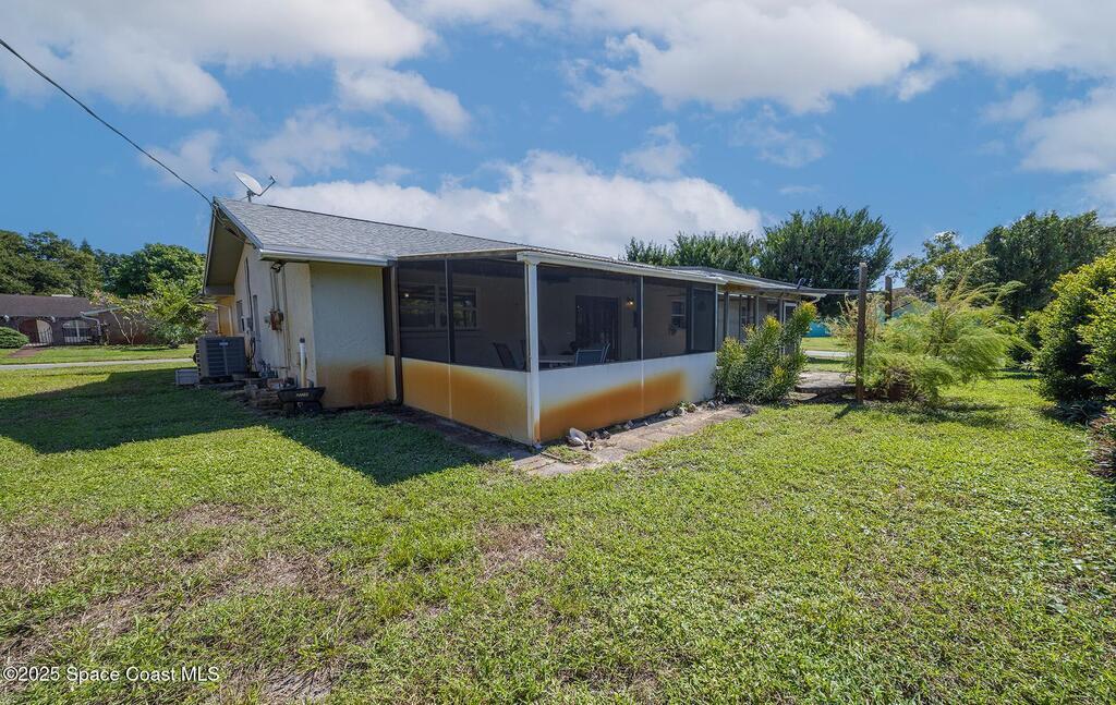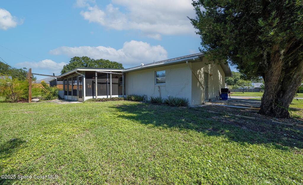 Welcome home to comfort and character in Titusville's Spring Valley. This well-kept 3-bed, 2-bath home features a bright, open layout with tile, wood, and carpet flooring adding warmth throughout. Living and dining areas connect to a screened patio overlooking the peaceful backyard--ideal for relaxing or entertaining. Updates include a roof under 3 years old, 2022 A/C, tankless water heater, and sprinkler system for easy maintenance and energy efficiency. Concrete-block construction with spacious attached garage on a corner lot. Located near parks, schools, and shopping--0.9 mi to Black Cat Coffee, 0.8 mi to Stuart Park, and 2.6 mi to downtown Titusville and the American Space Museum. Dining room chandelier does not convey.