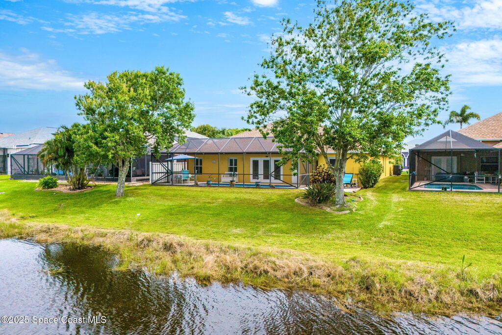 Lakefront Pool Home in Wingate Estates! This inviting 4BR/3BA courtyard-style home offers peaceful lake views and a rare 3-car garage with oversized RV bay. Updates include a newer roof (2019), A/C (2020), sprinkler system (2025), luxury vinyl plank flooring in guest rooms (2024), newly resurfaced pool (2025) and plantation shutters throughout (2021). The home features a generous open living and dining area, kitchen with breakfast nook, and a screened pool ideal for relaxing or entertaining. Zoned for top-rated Viera schools (elementary and middle!) and close to golf, shopping, dining, and beaches. Schedule your showing today!